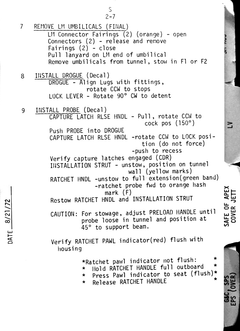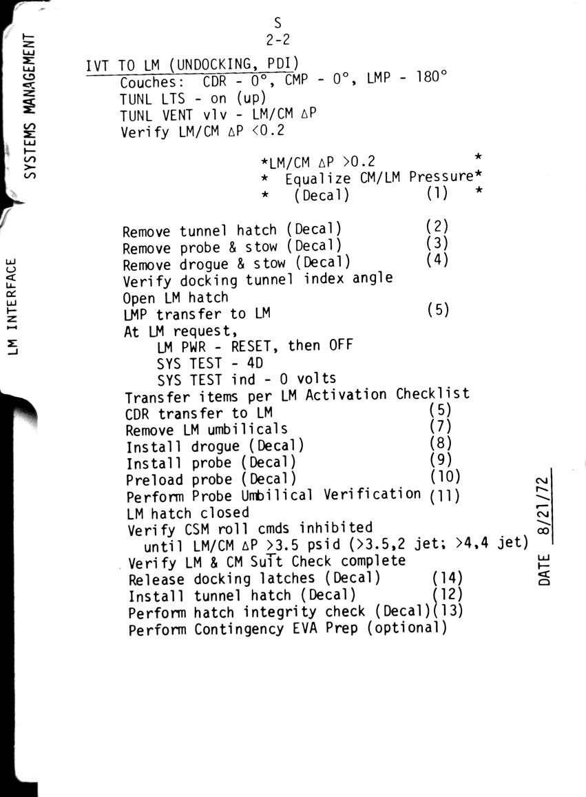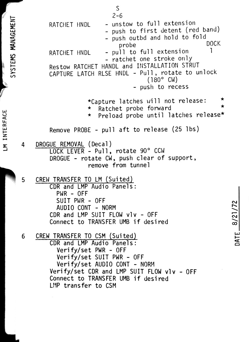 - 2-06 Sub-checklist - Drogue removal, Crew transfer to LM (suited), Crew transfer to CSM (suited)