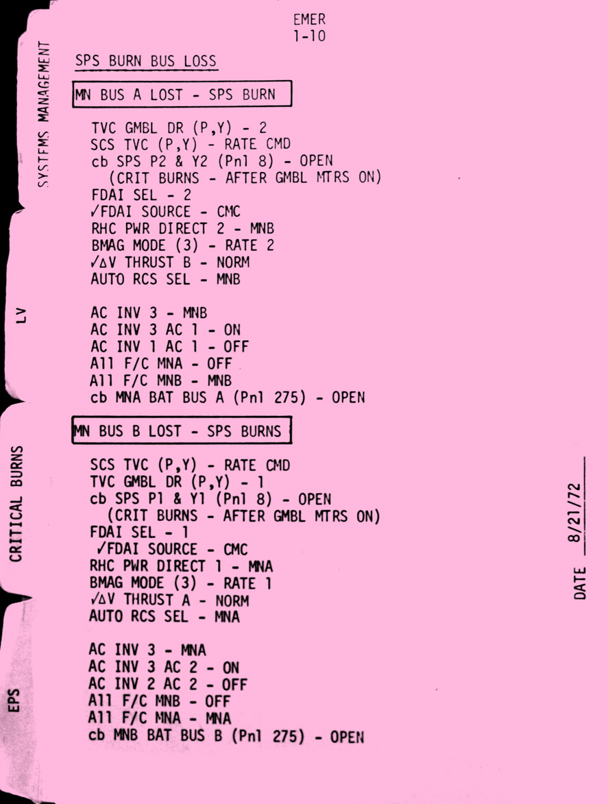 - emer1-10 SPS burn bus loss