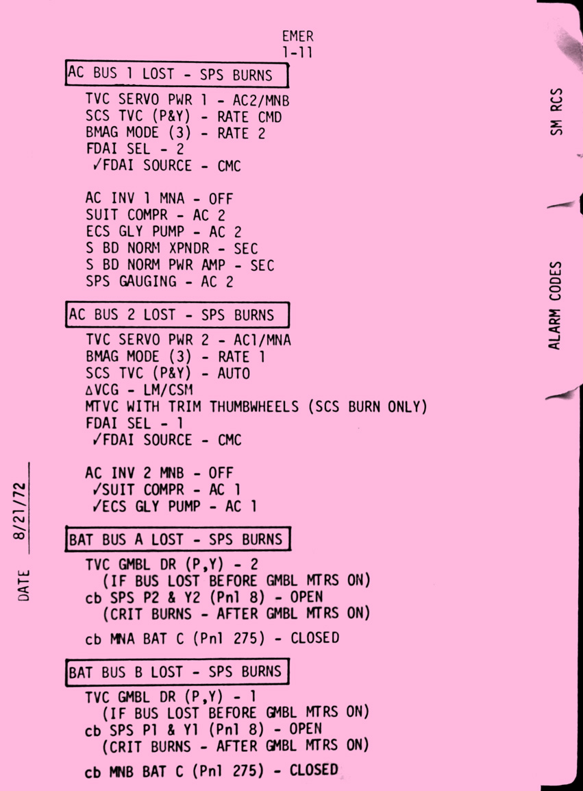 - emer1-11 SPS burn bus loss (continued)