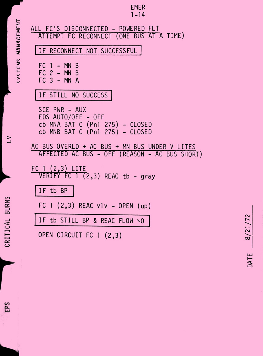 - emer1-14 All FC's disconnected, AC bus overload + AC bus + Mn bus under V lites. FC1 (2, 3) lite