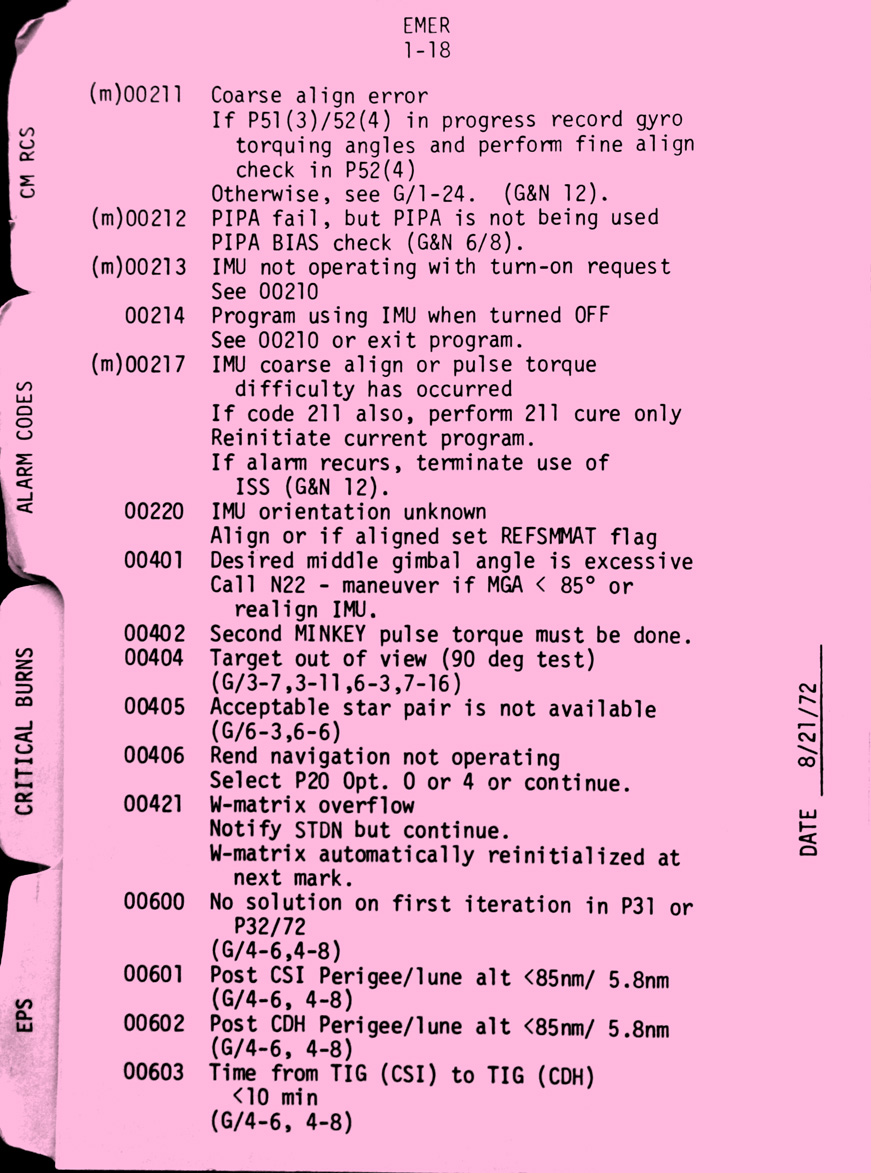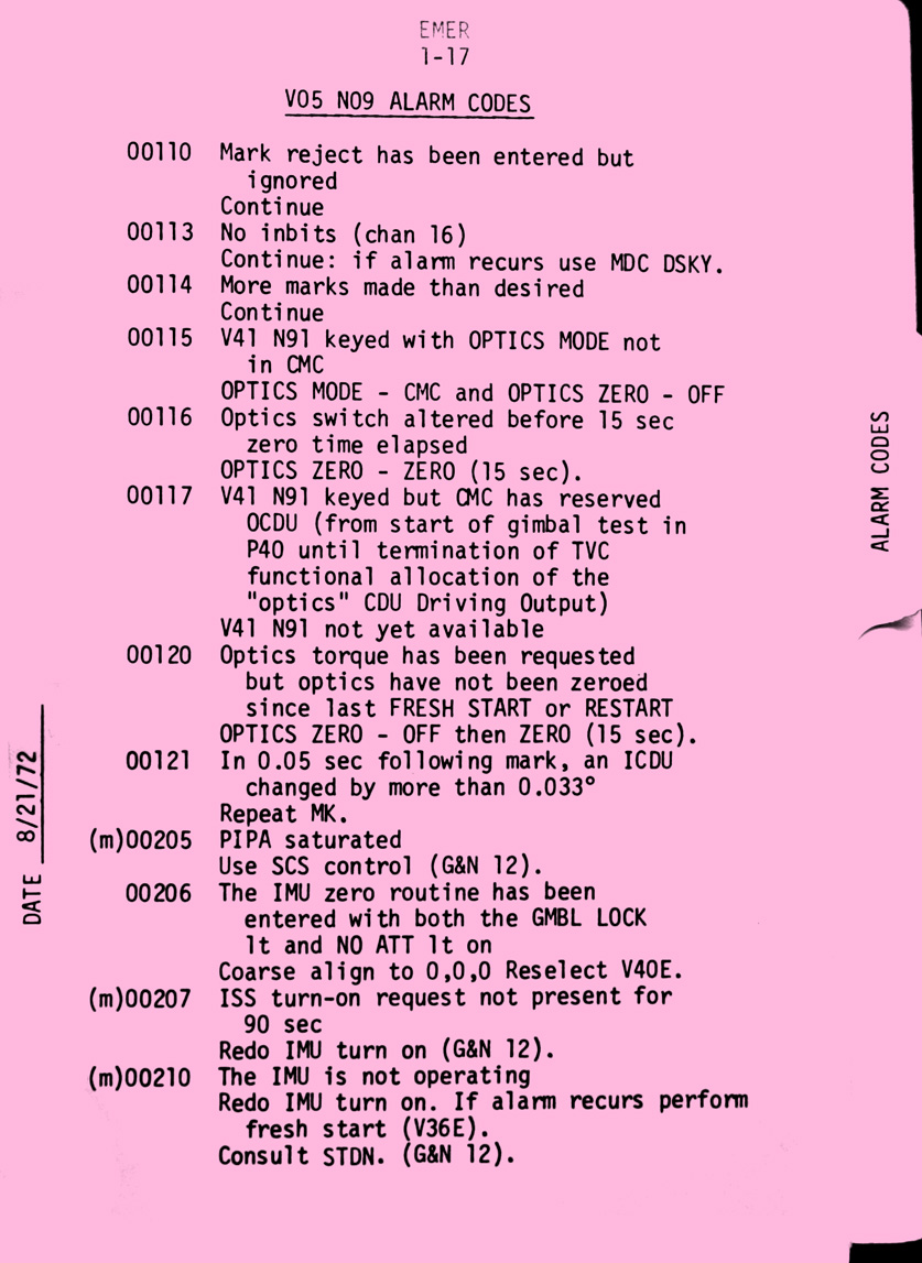 - emer1-18 Verb 5, Noun 9 alarm codes (continued)
