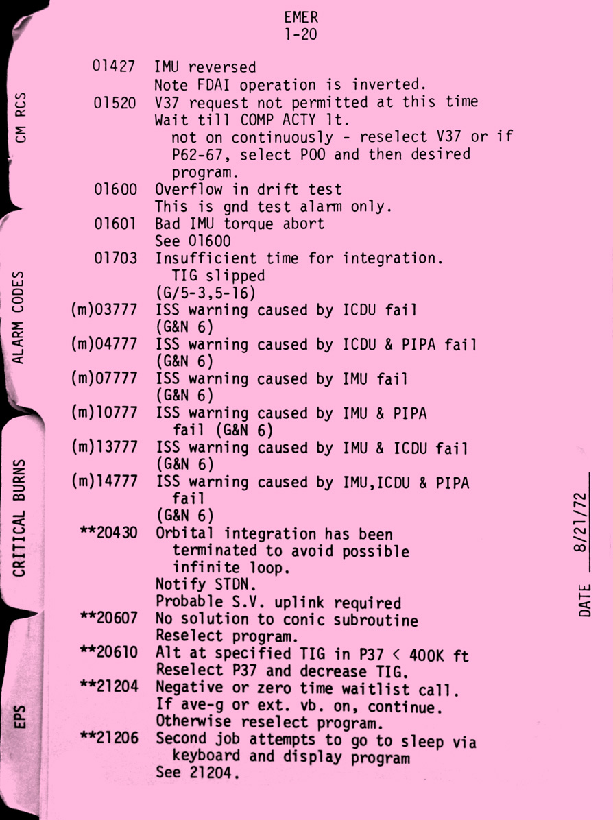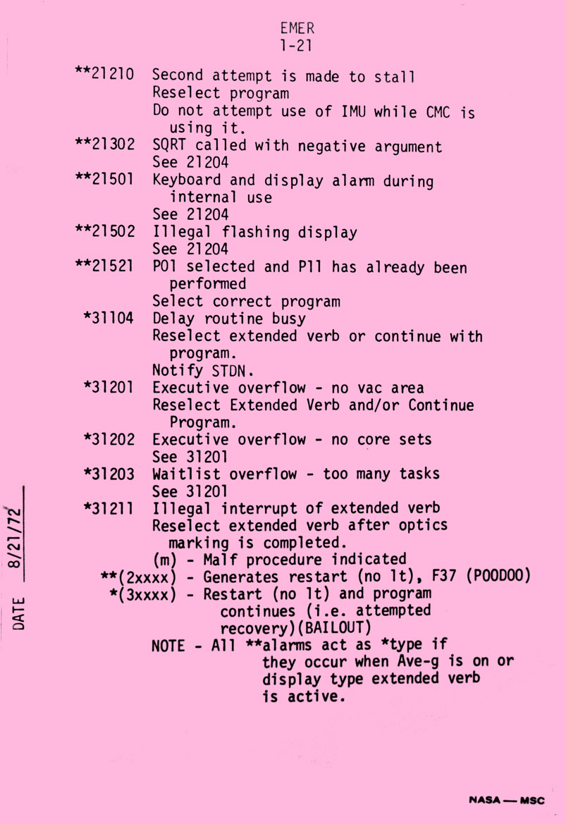 - emer1-21 Verb 5, Noun 9 alarm codes (continued)