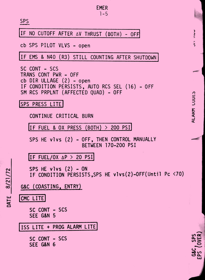 - emer1-05 SPS, G&C coasting entry