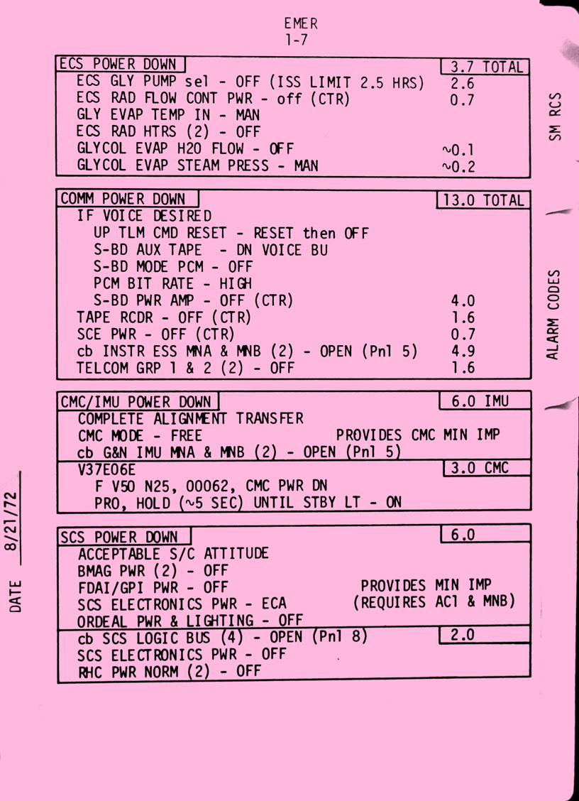 - emer1-07 Power downs - ECS, Comms, CMC/IMU, SCS