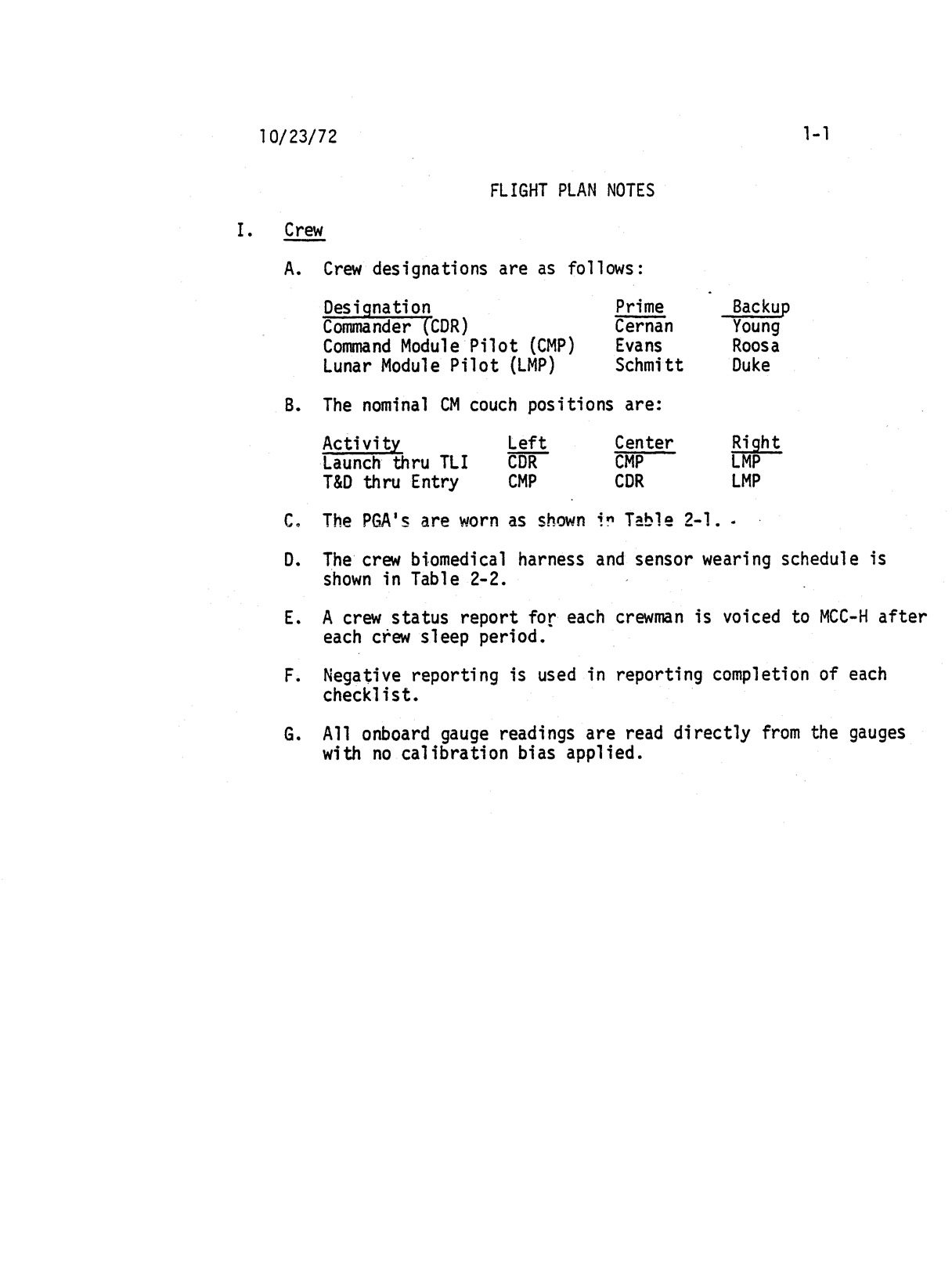 Section 1 - Flight Plan Notes