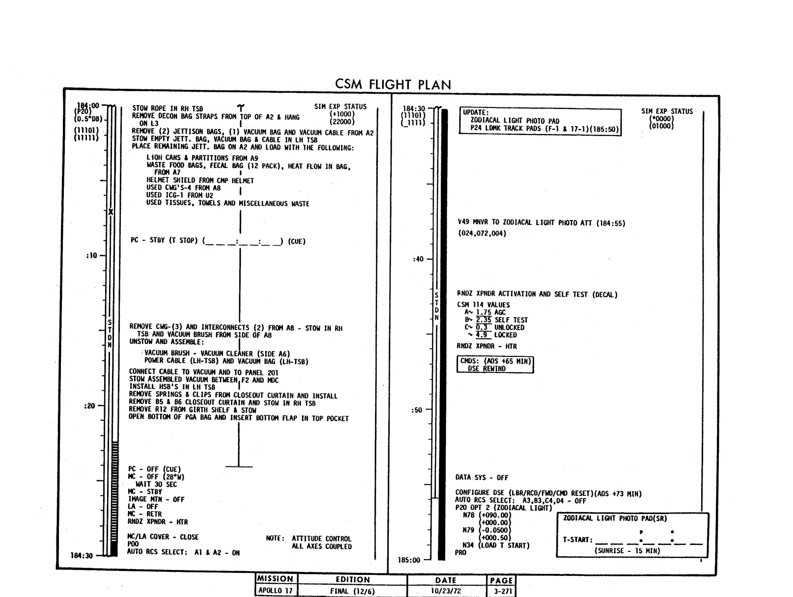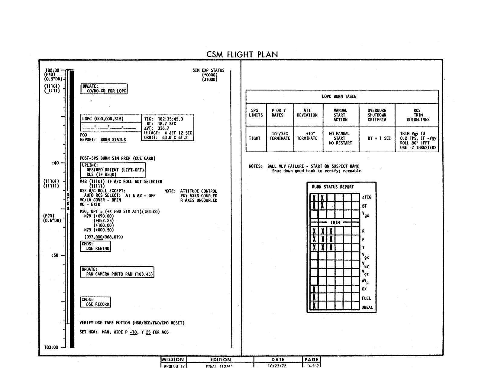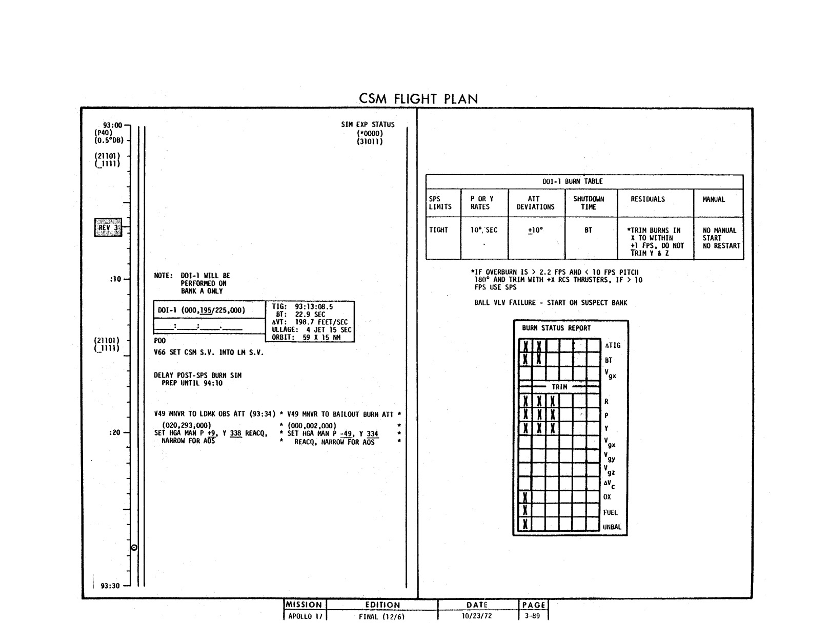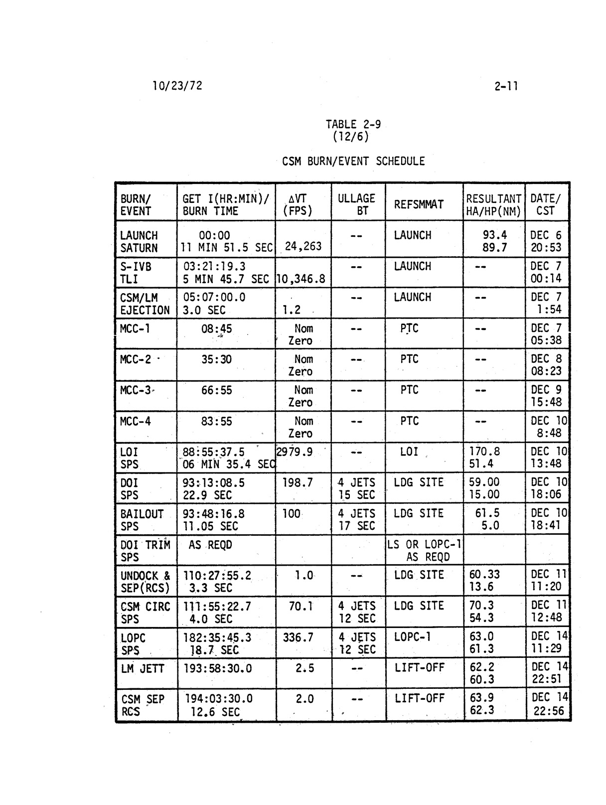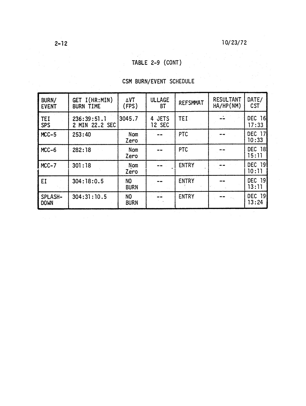 - 2-011 Table 2-9 - CSM burn/event schedule