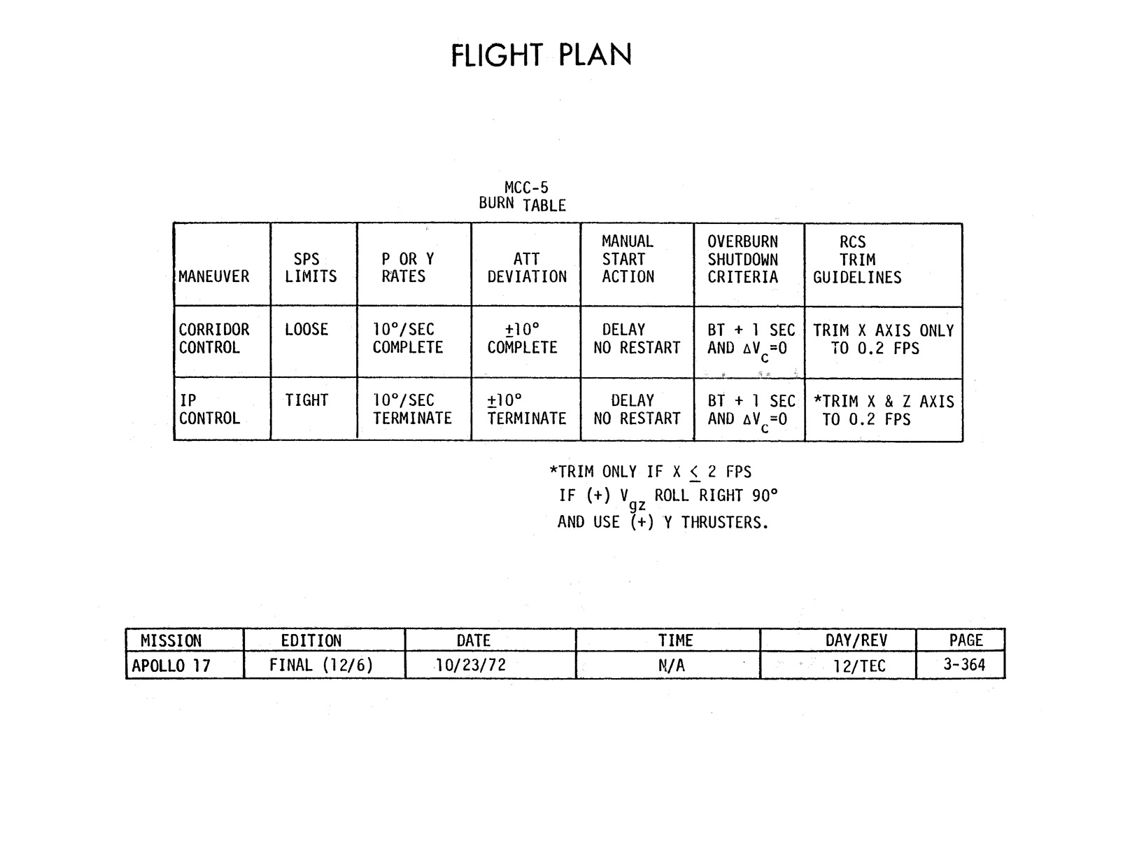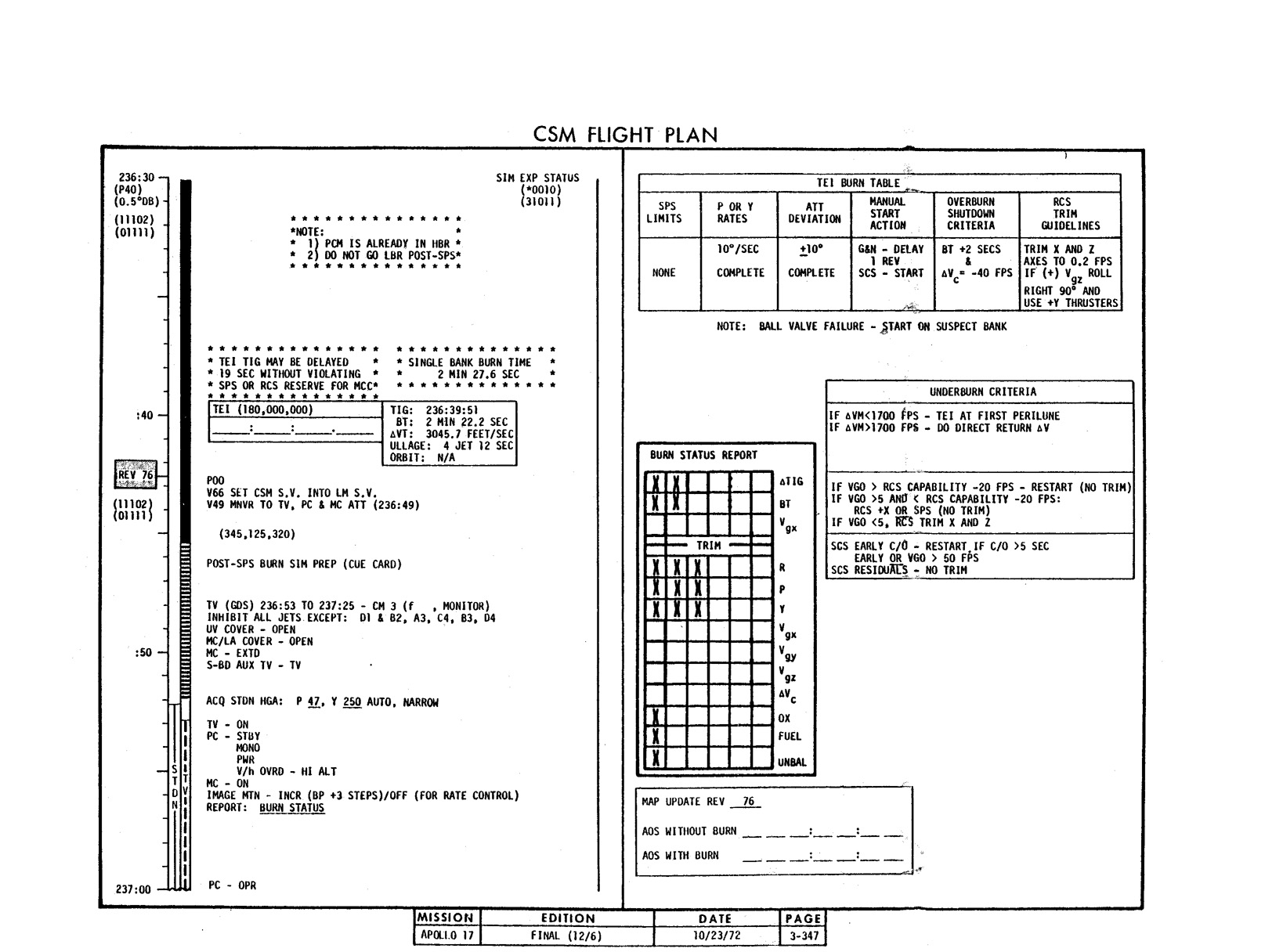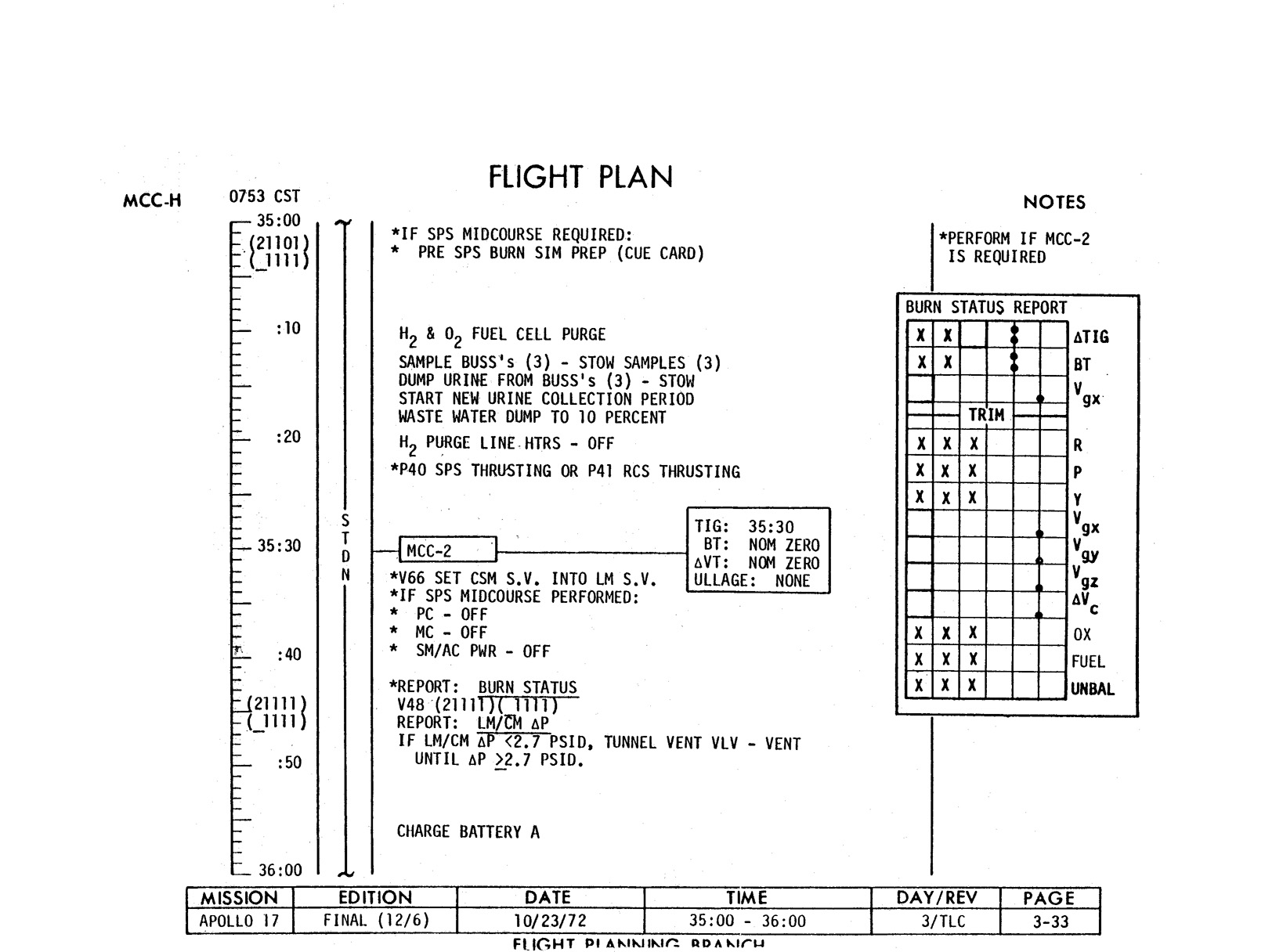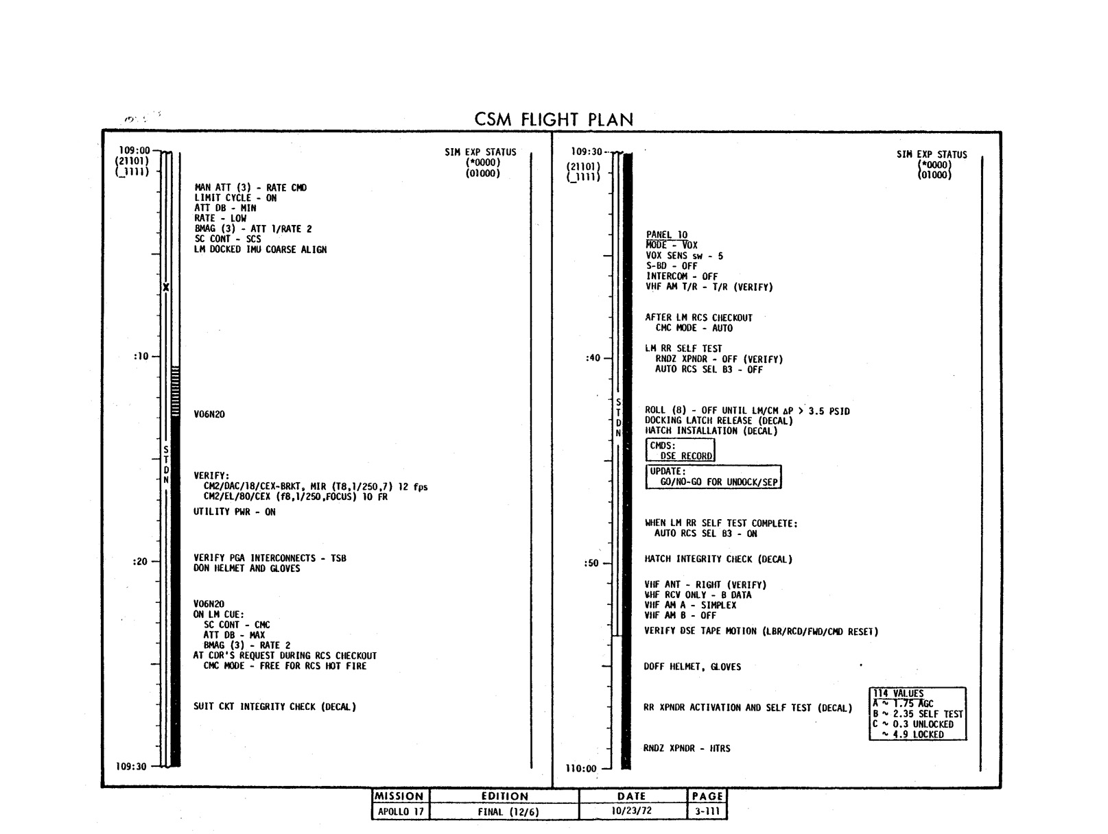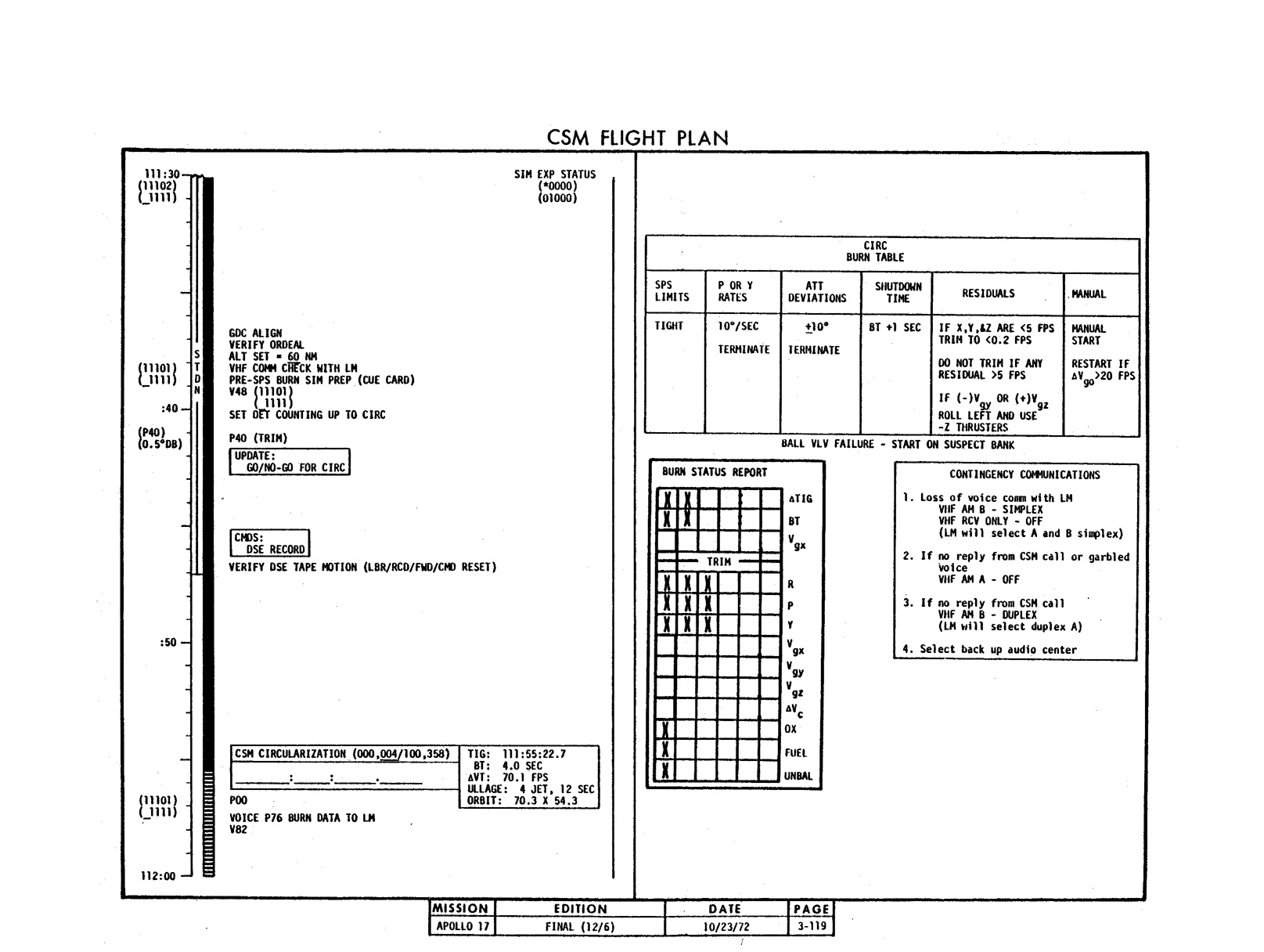 - 2-011 Table 2-9 - CSM burn/event schedule