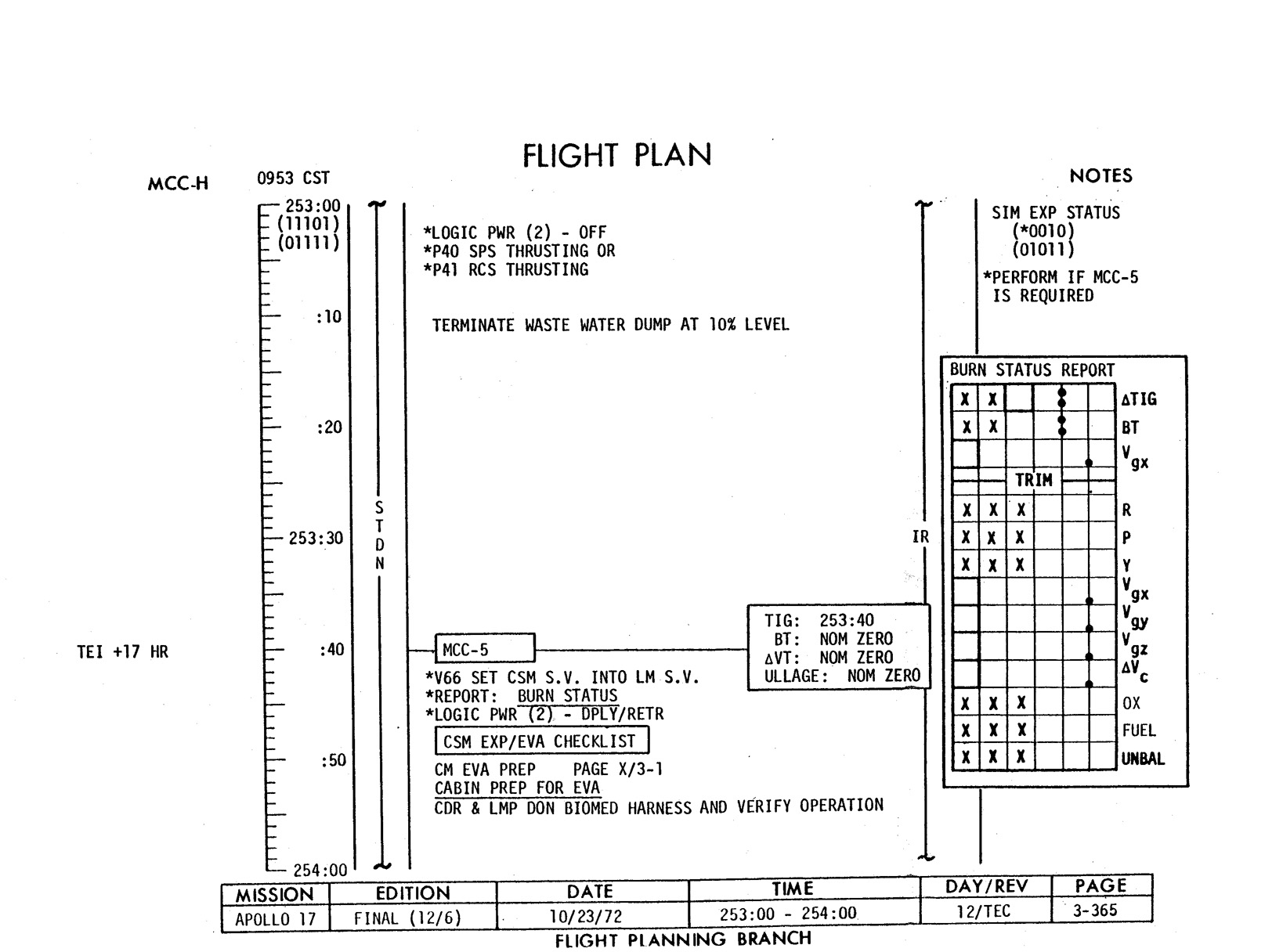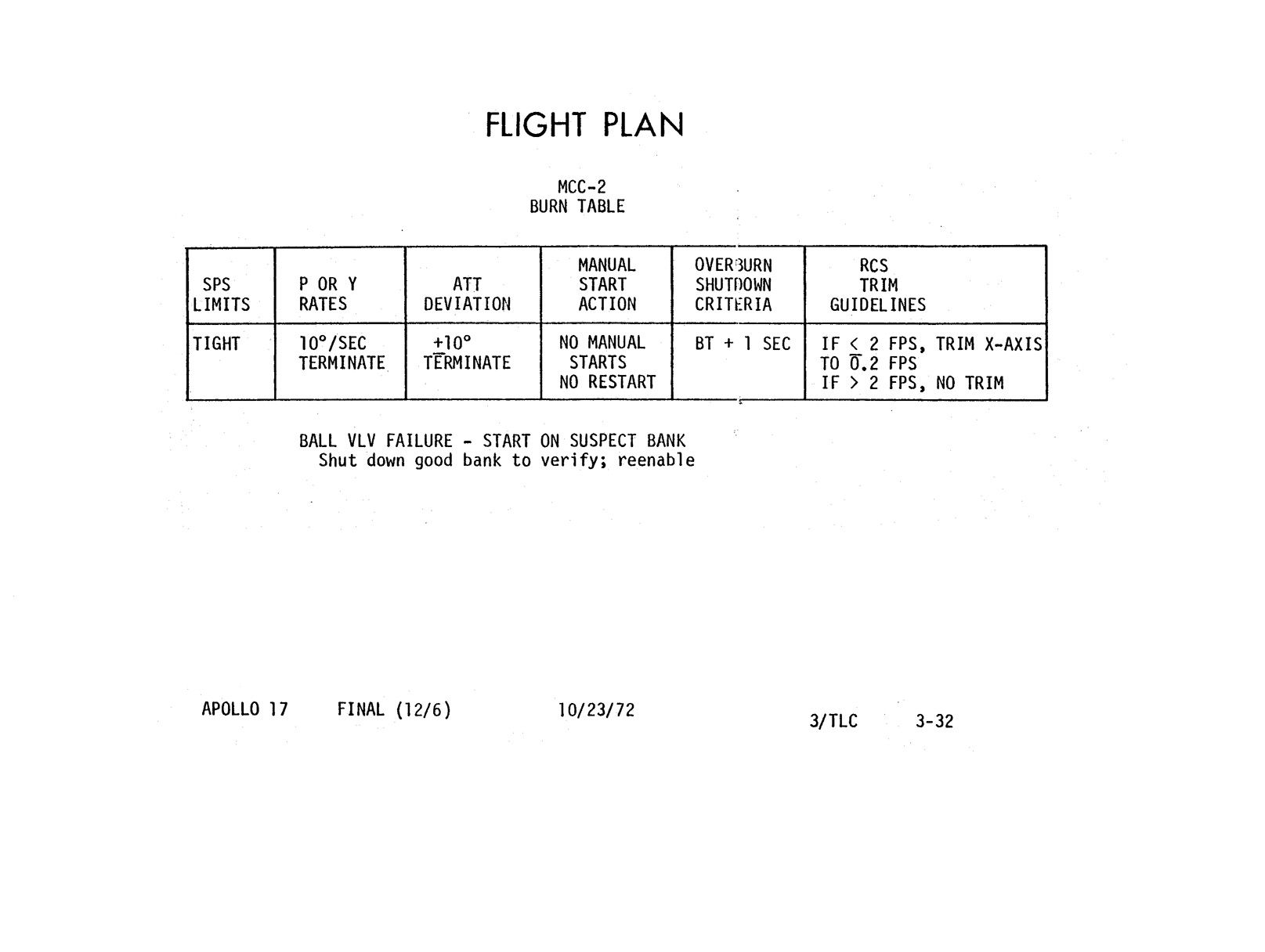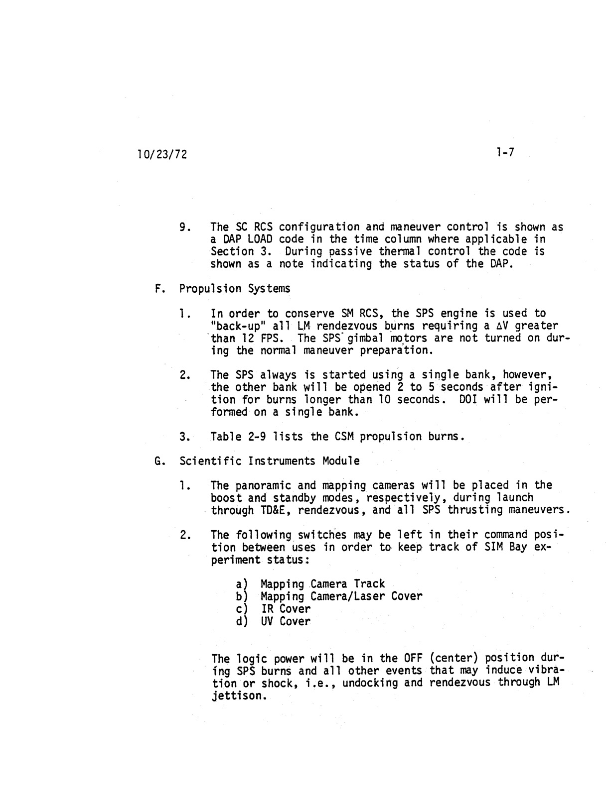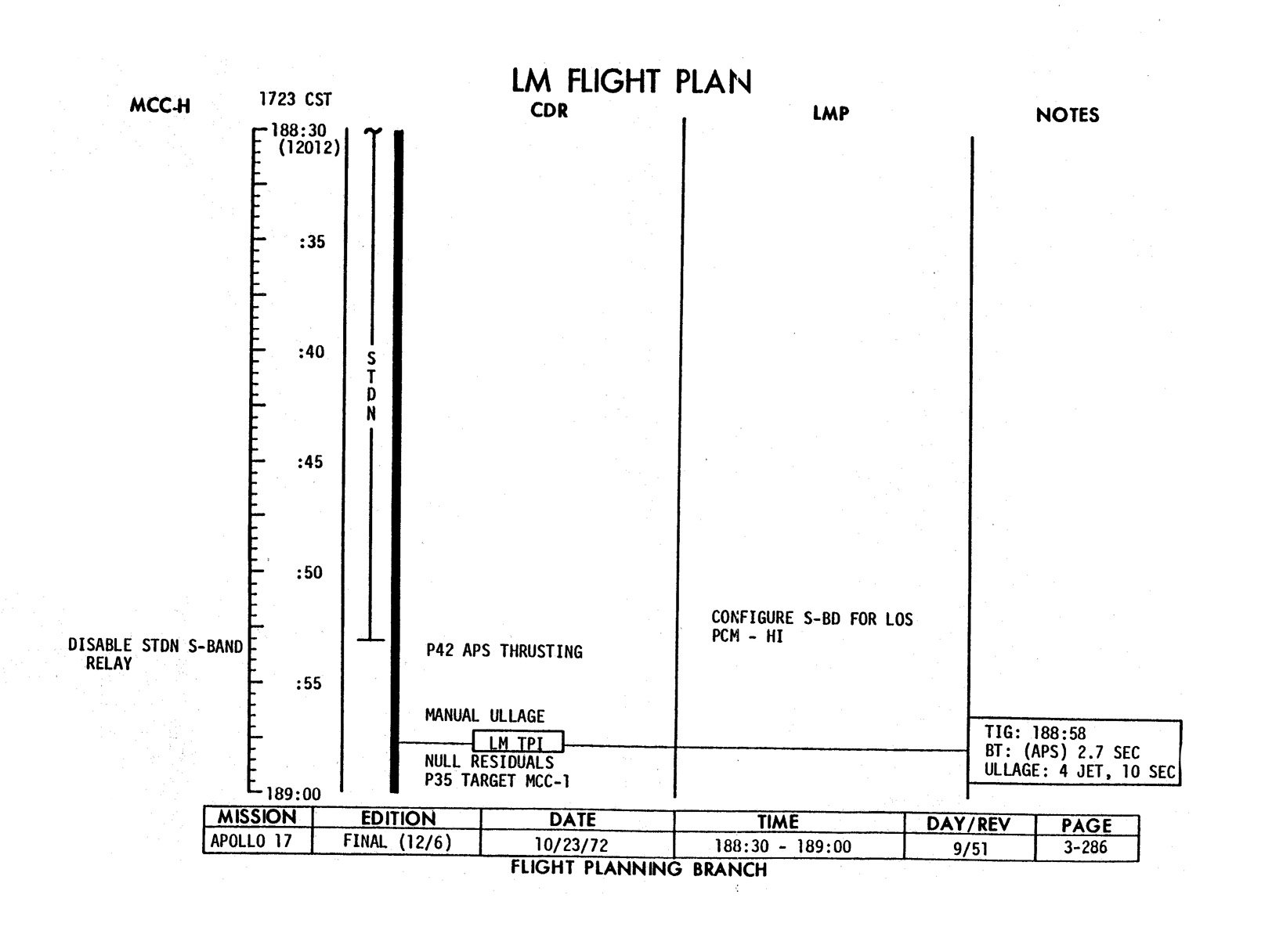 - 2-011 Table 2-9 - CSM burn/event schedule