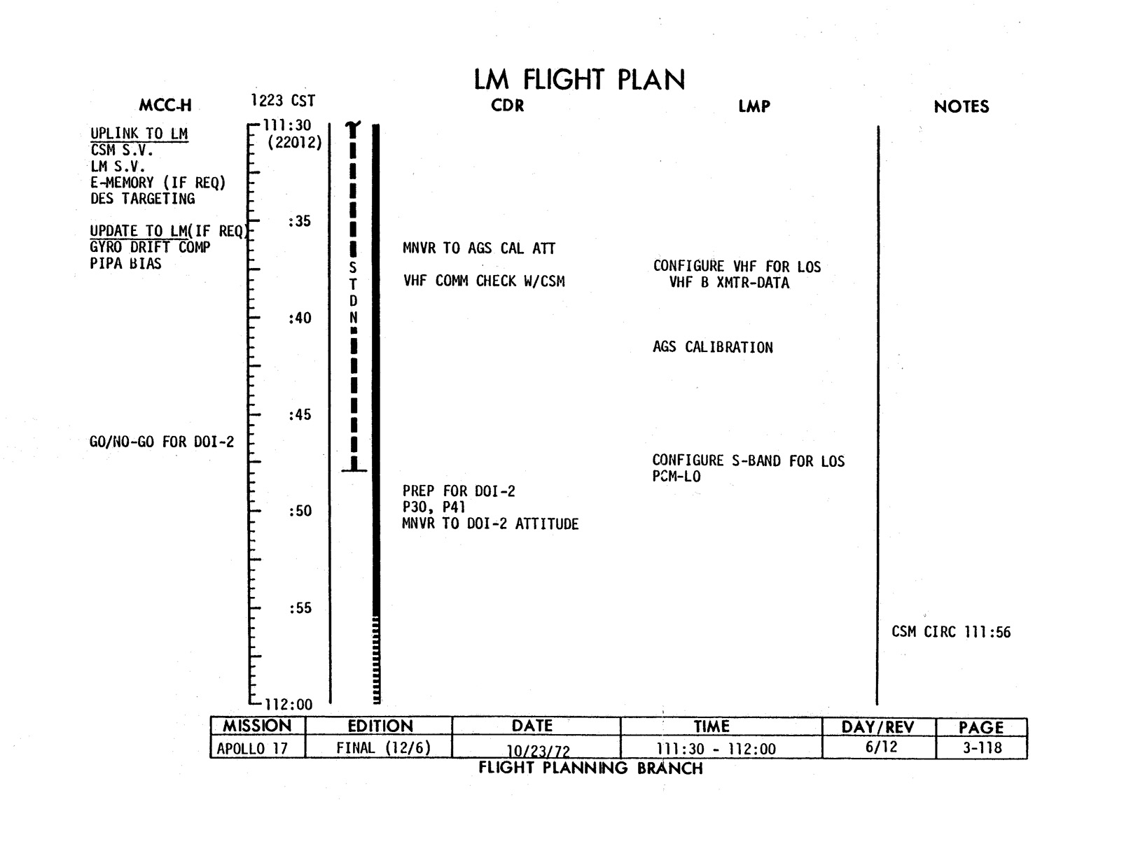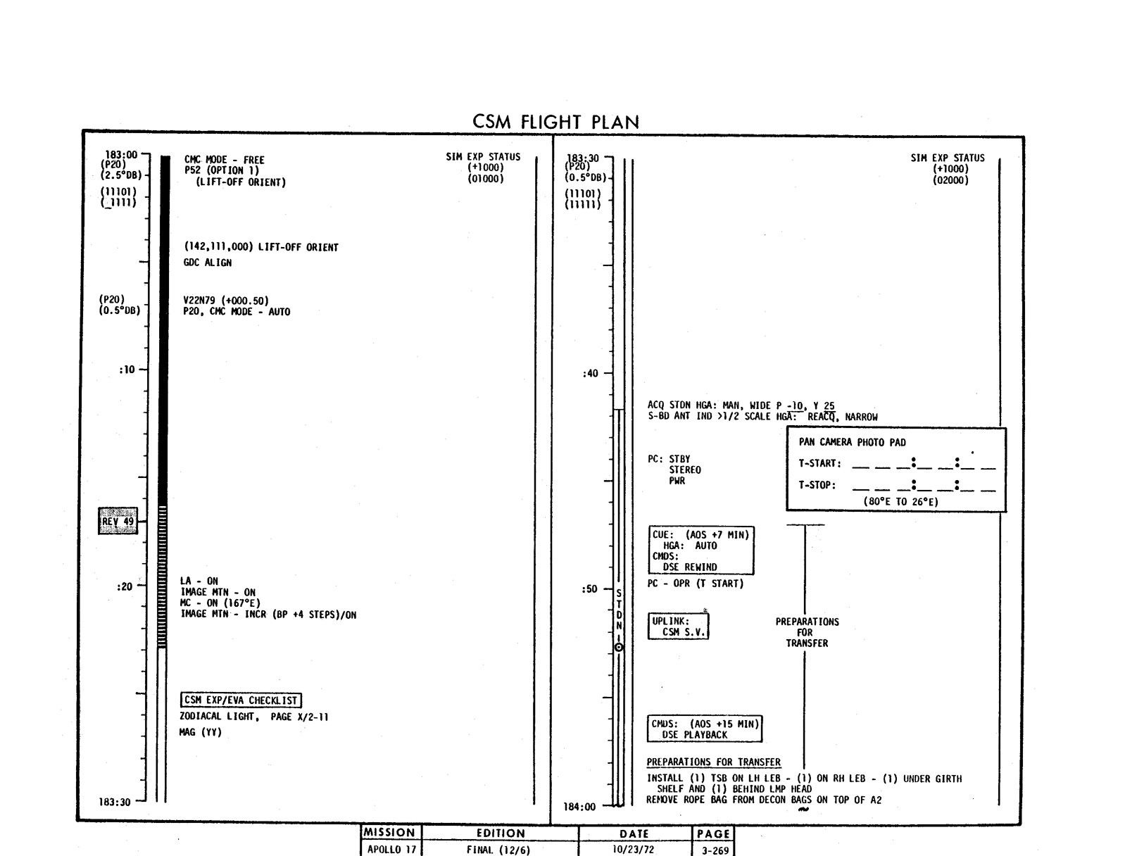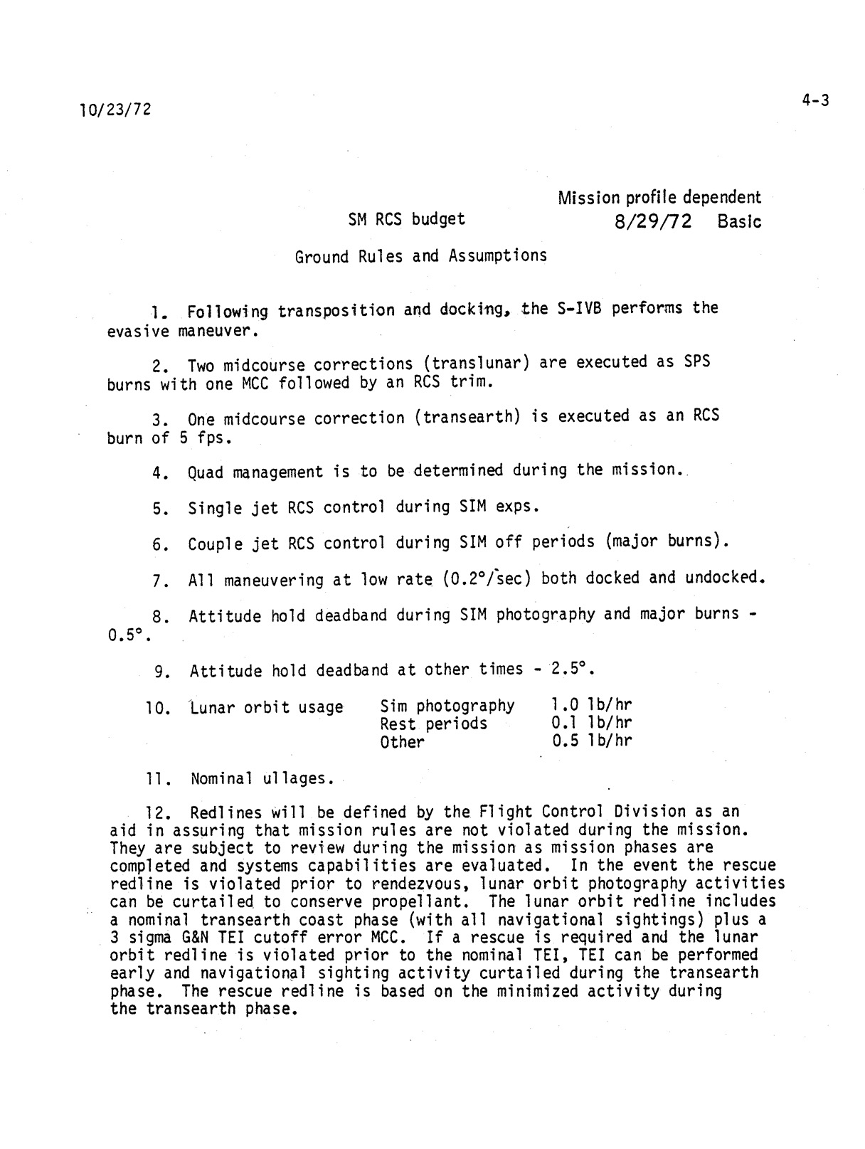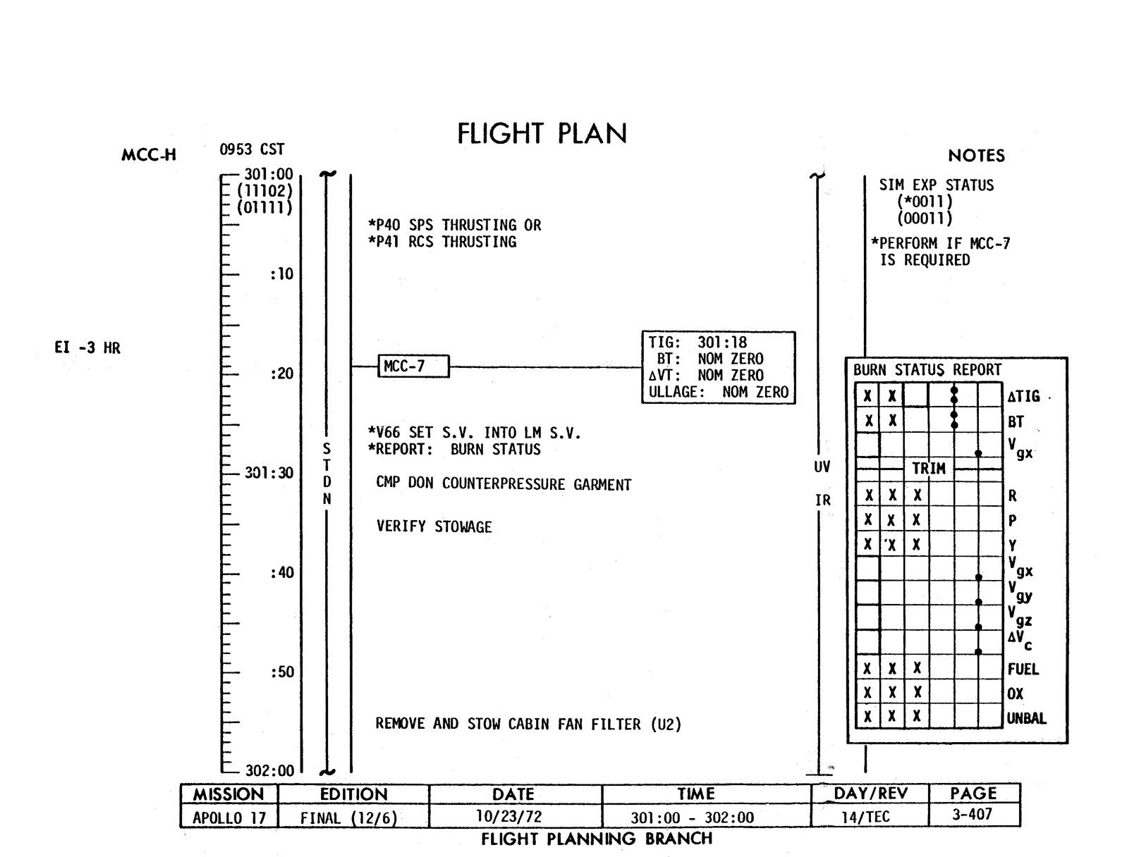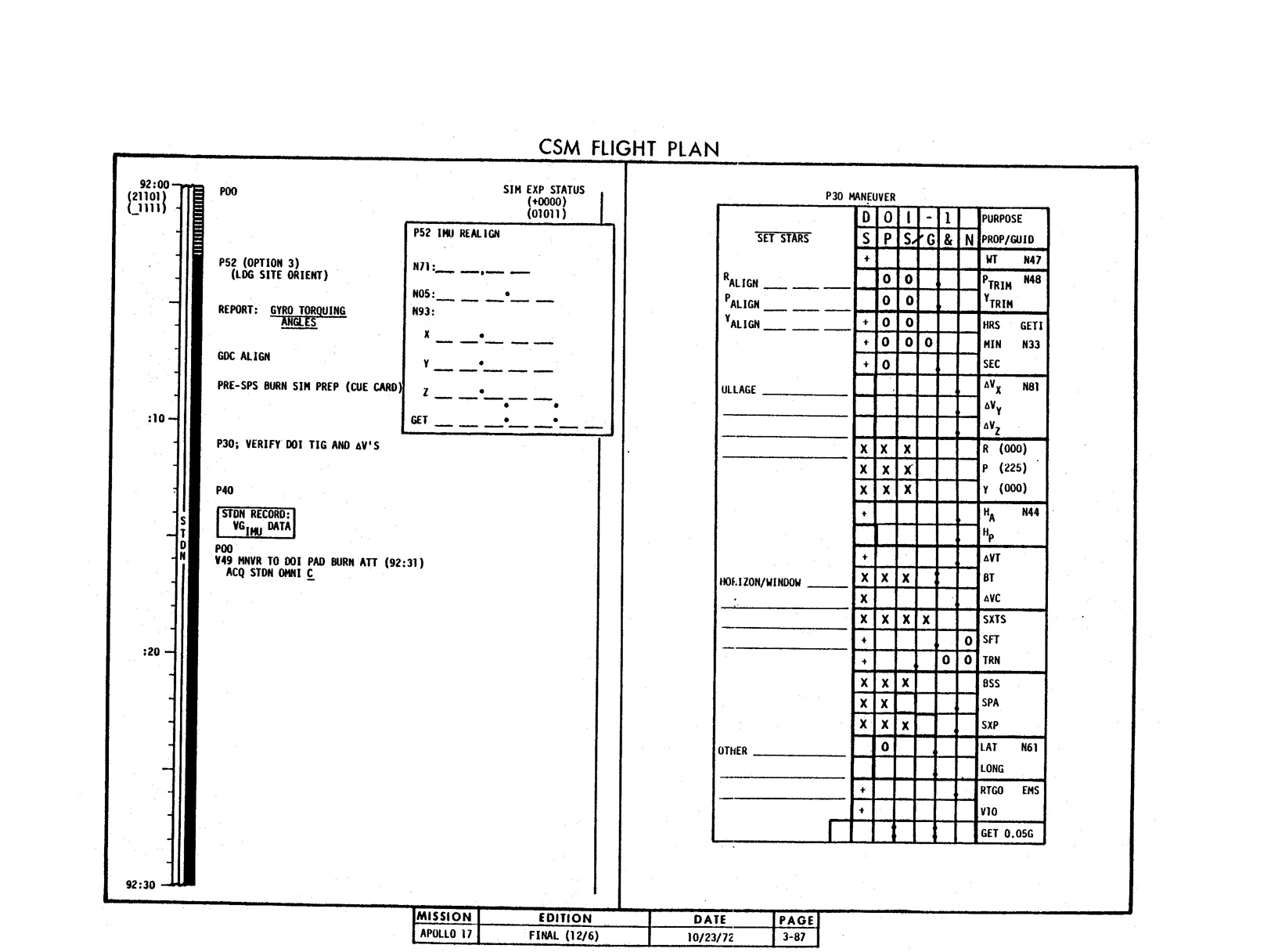 - 2-011 Table 2-9 - CSM burn/event schedule