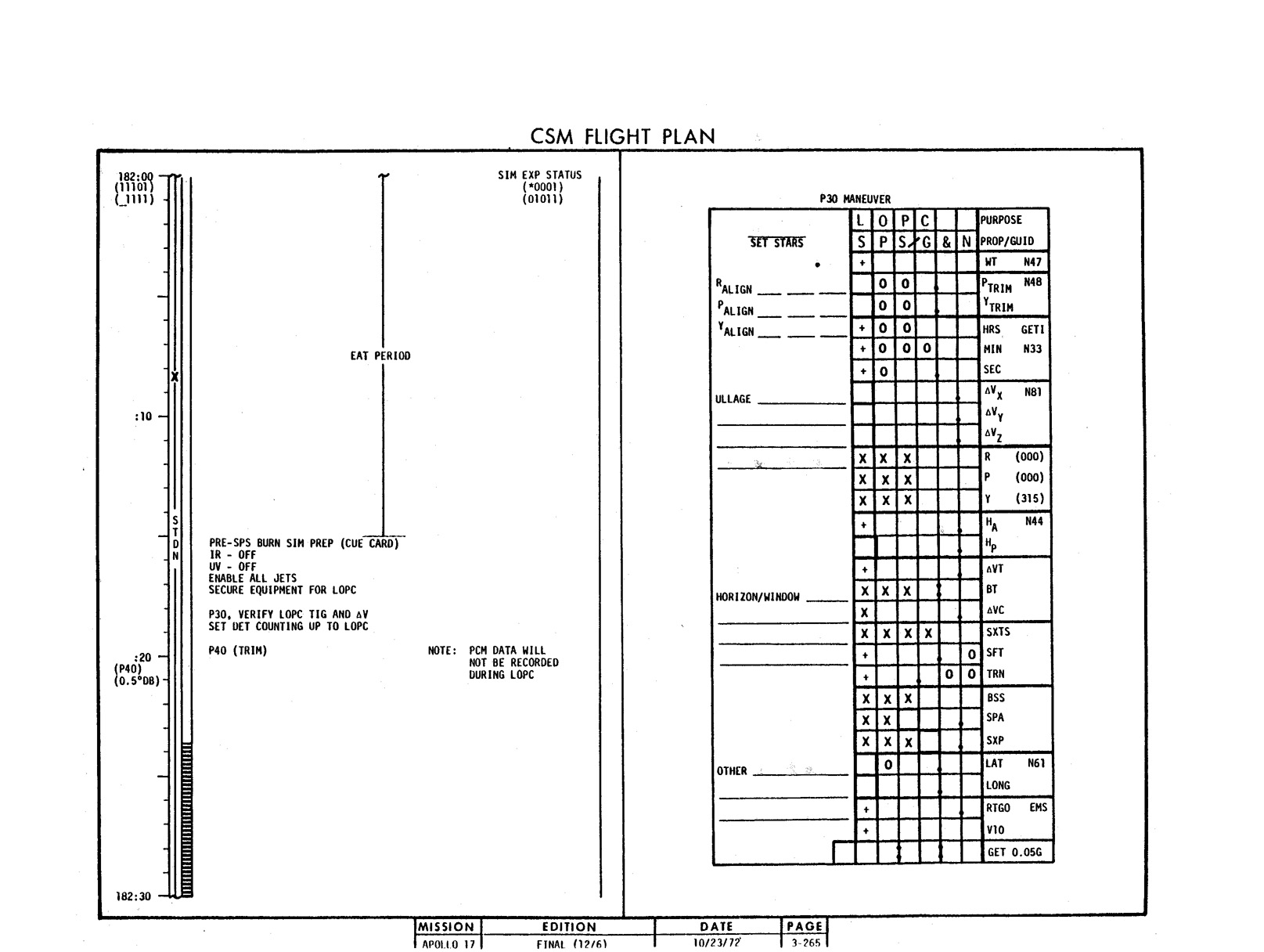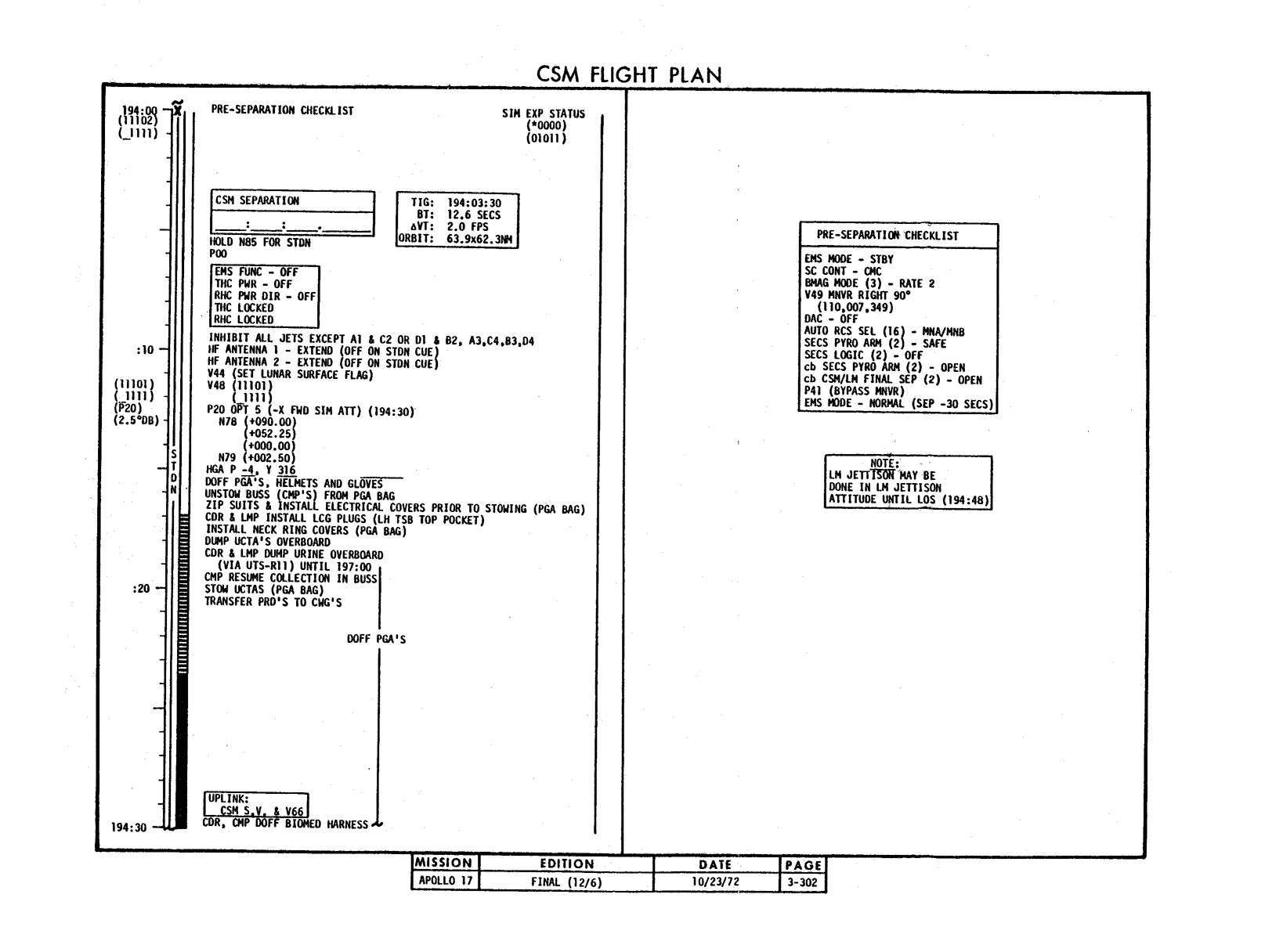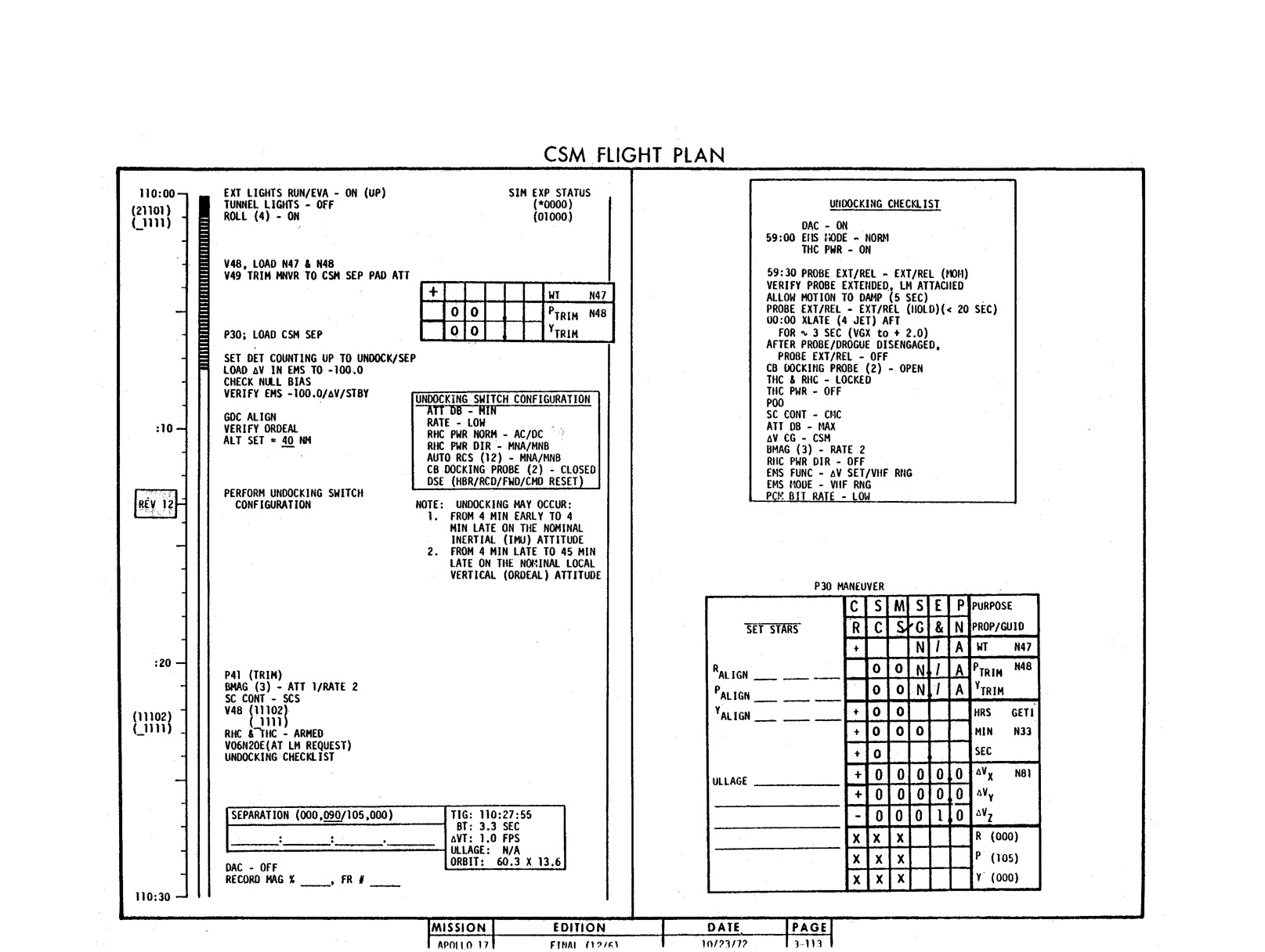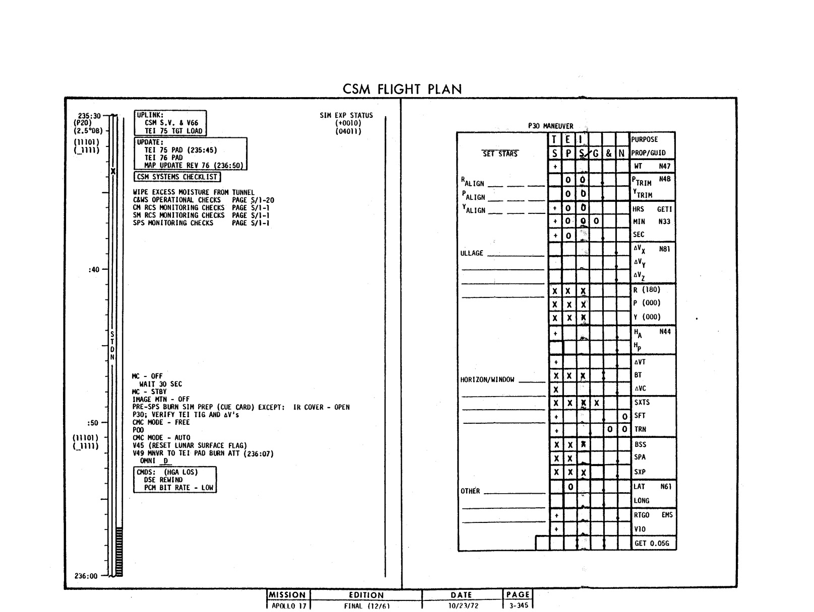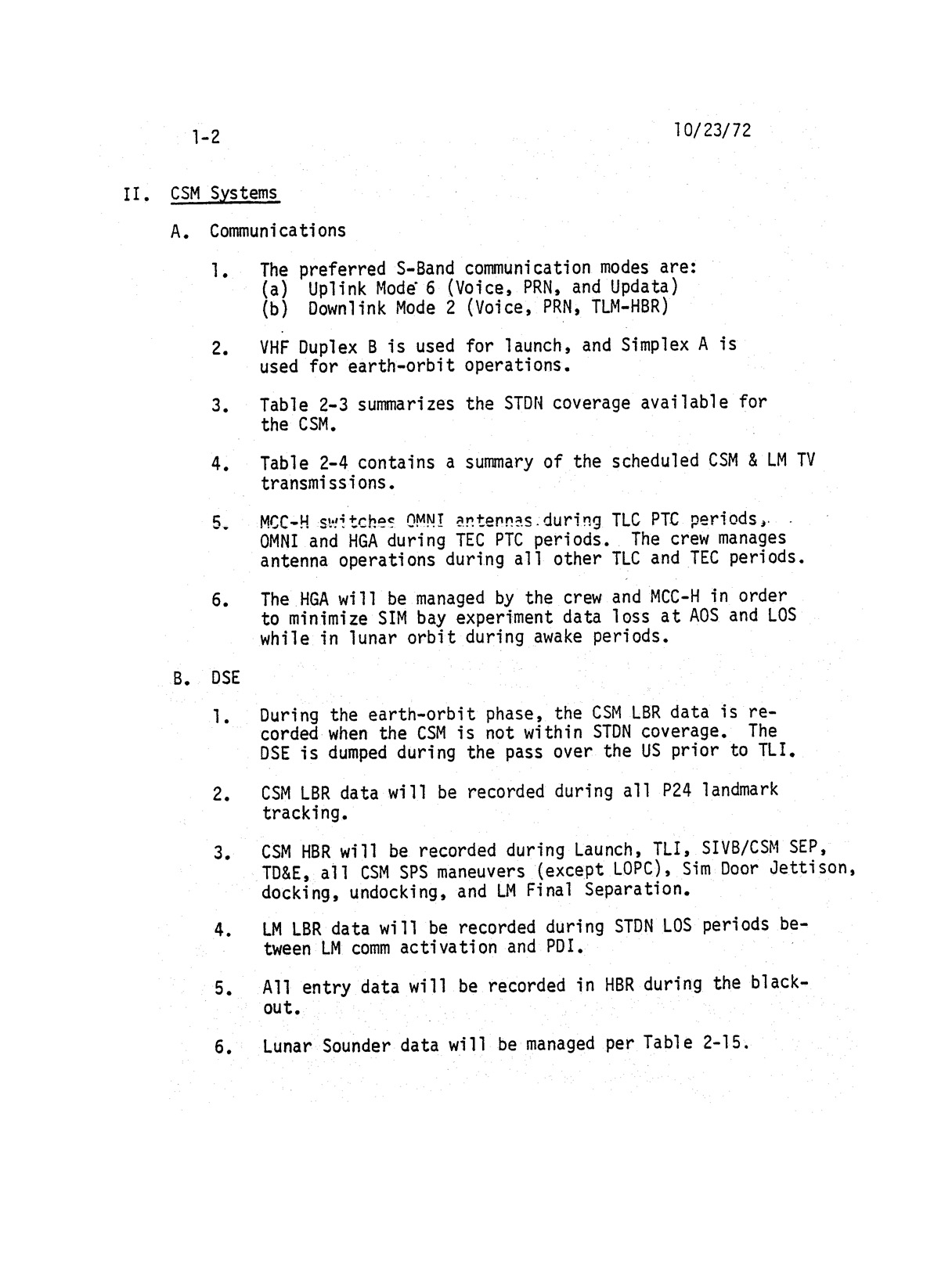 - 2-011 Table 2-9 - CSM burn/event schedule