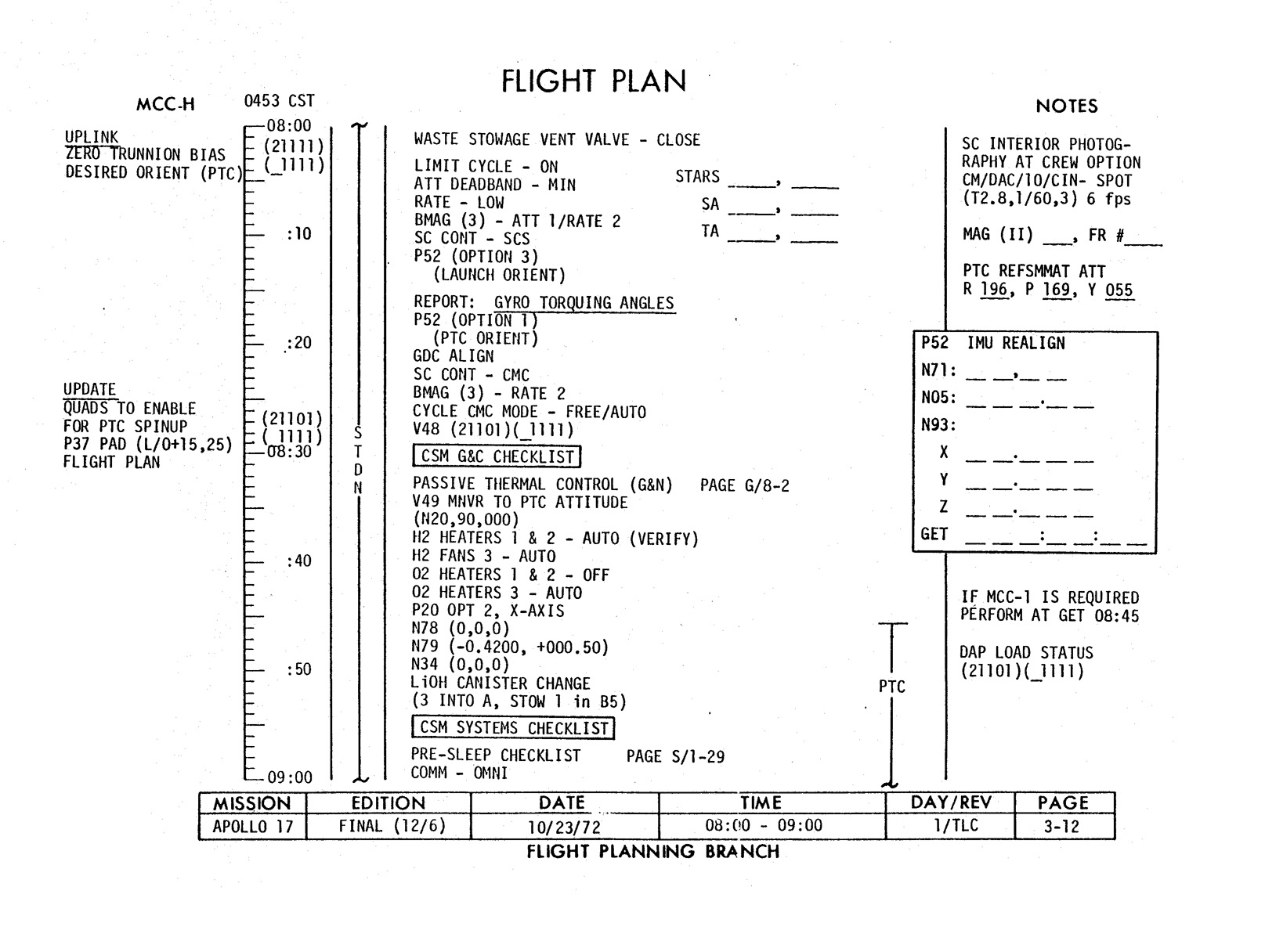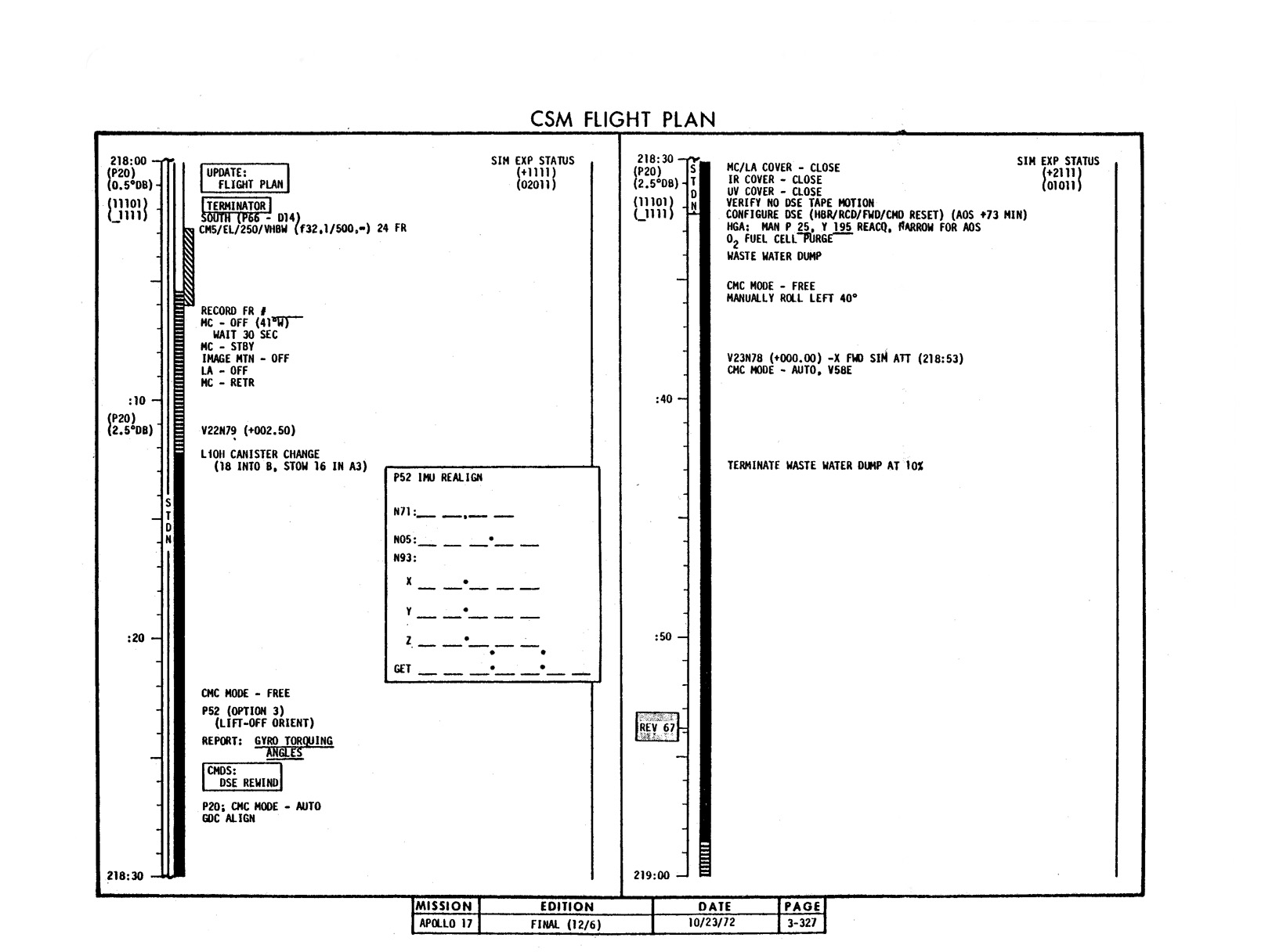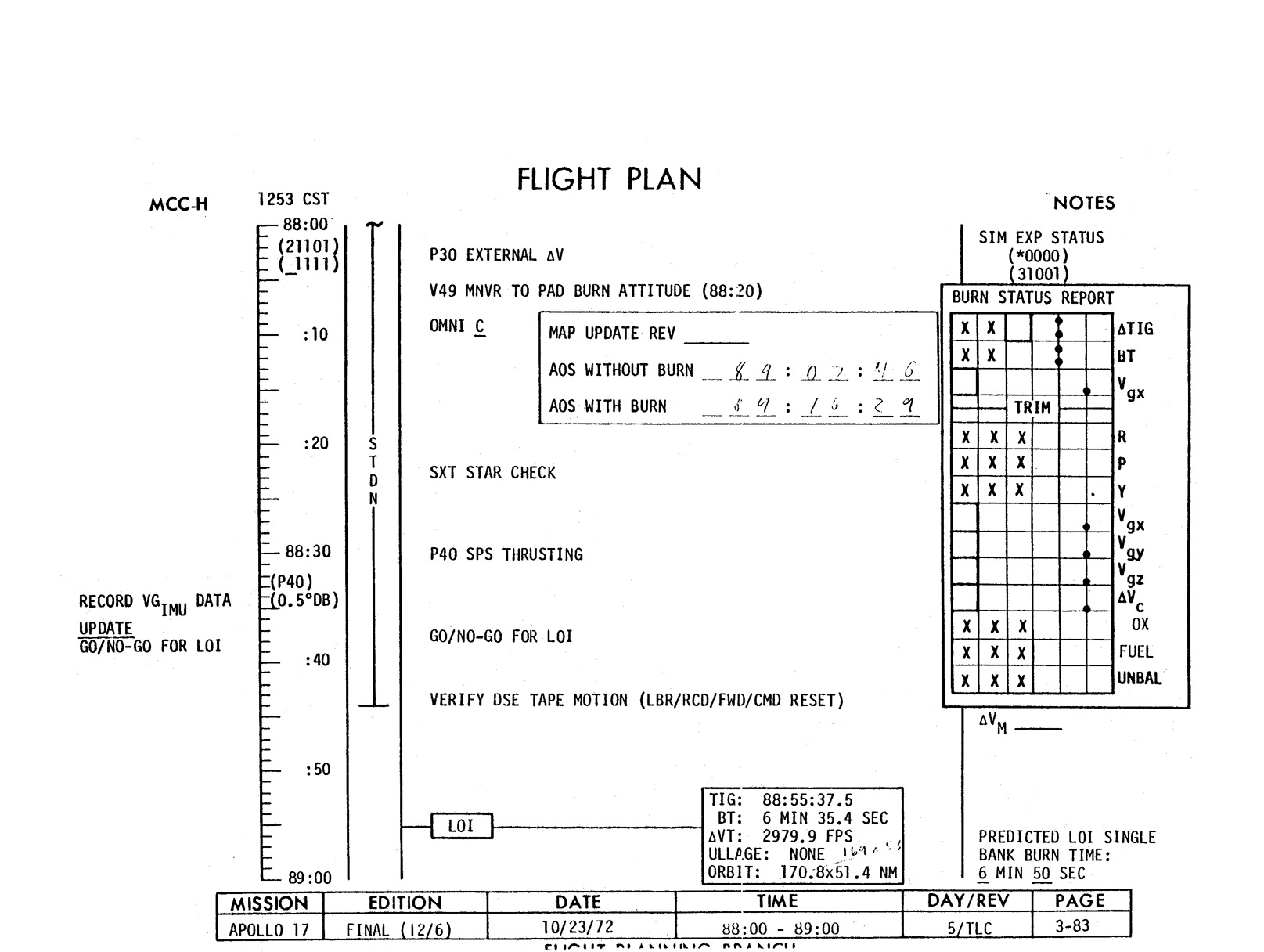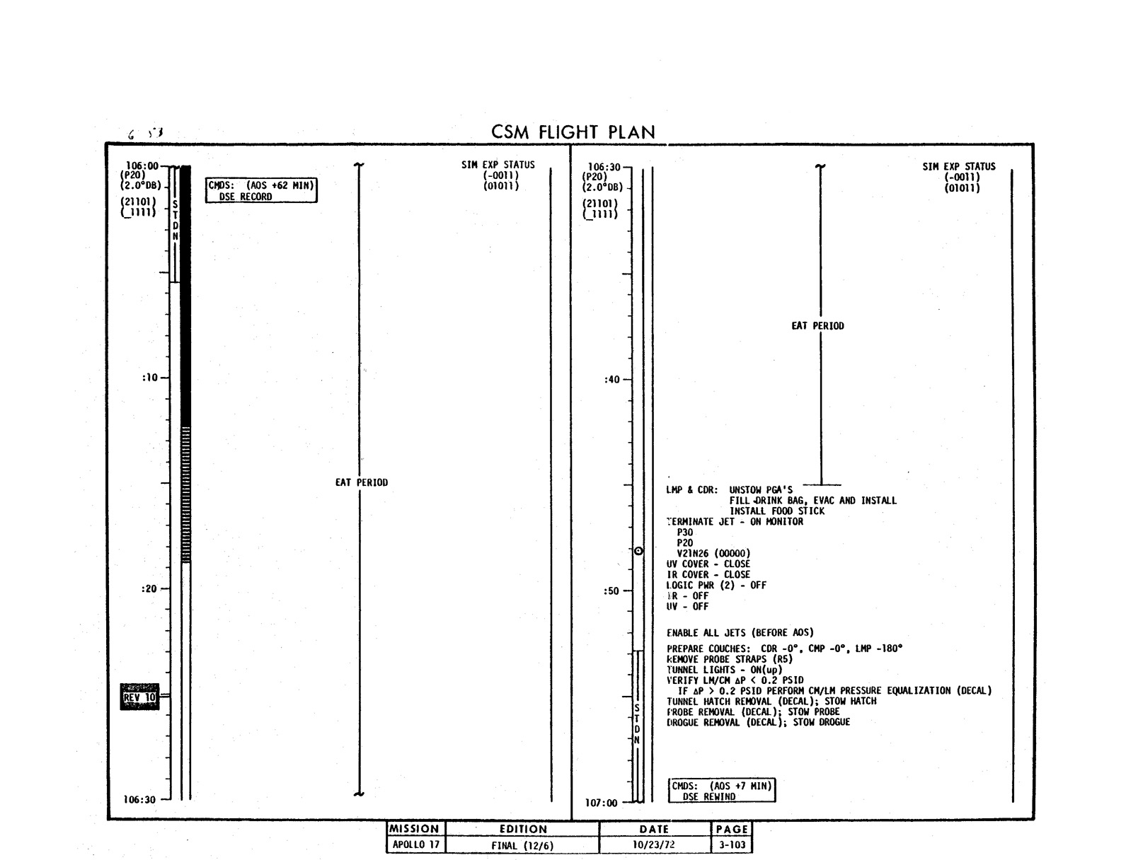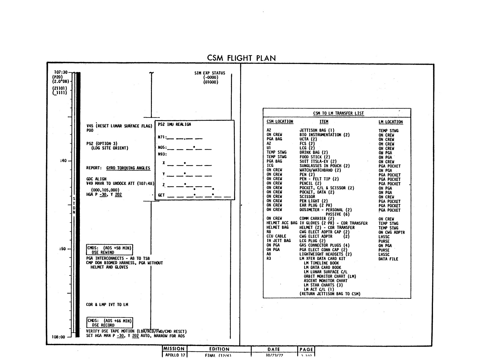 - 2-011 Table 2-9 - CSM burn/event schedule