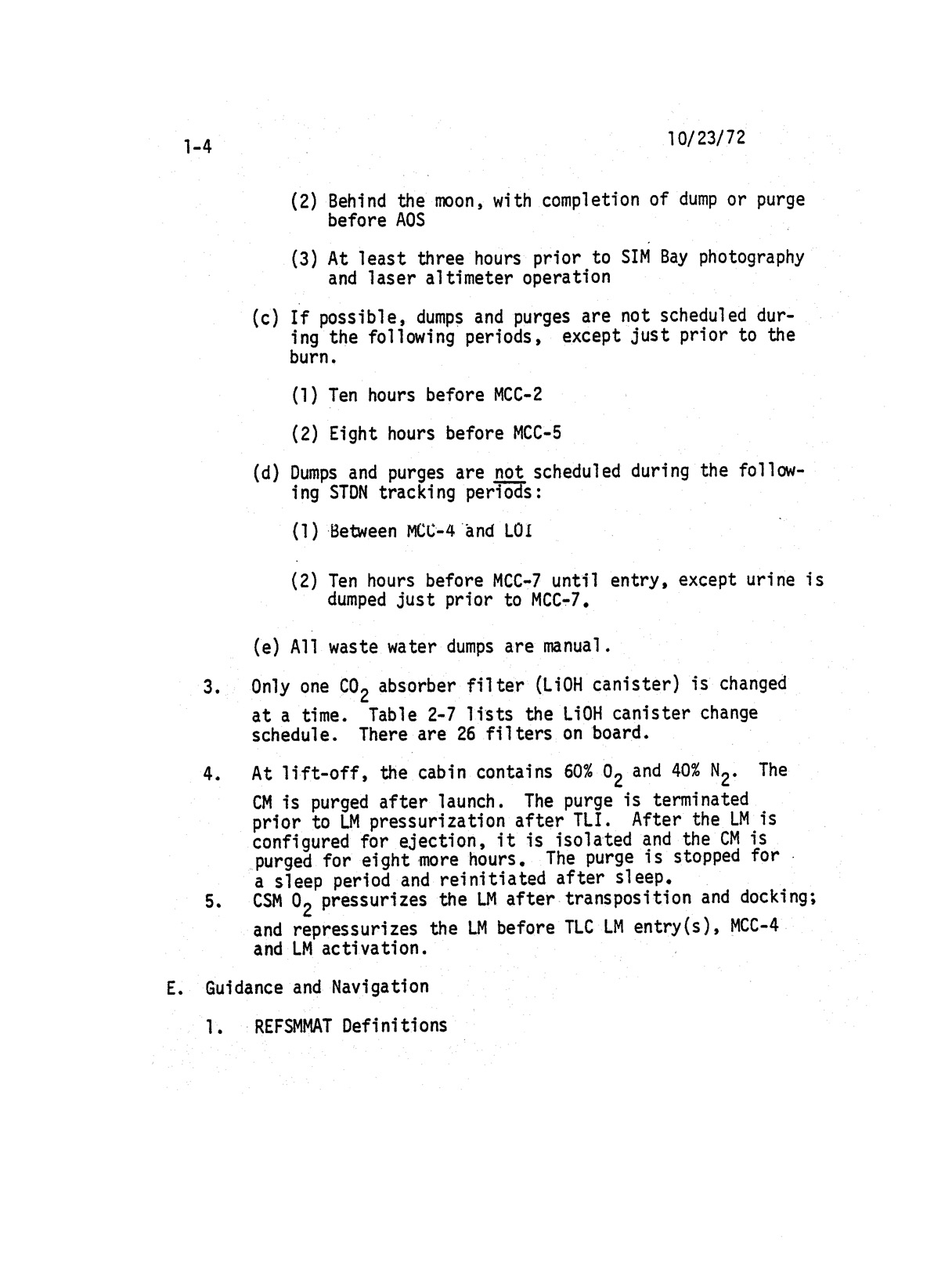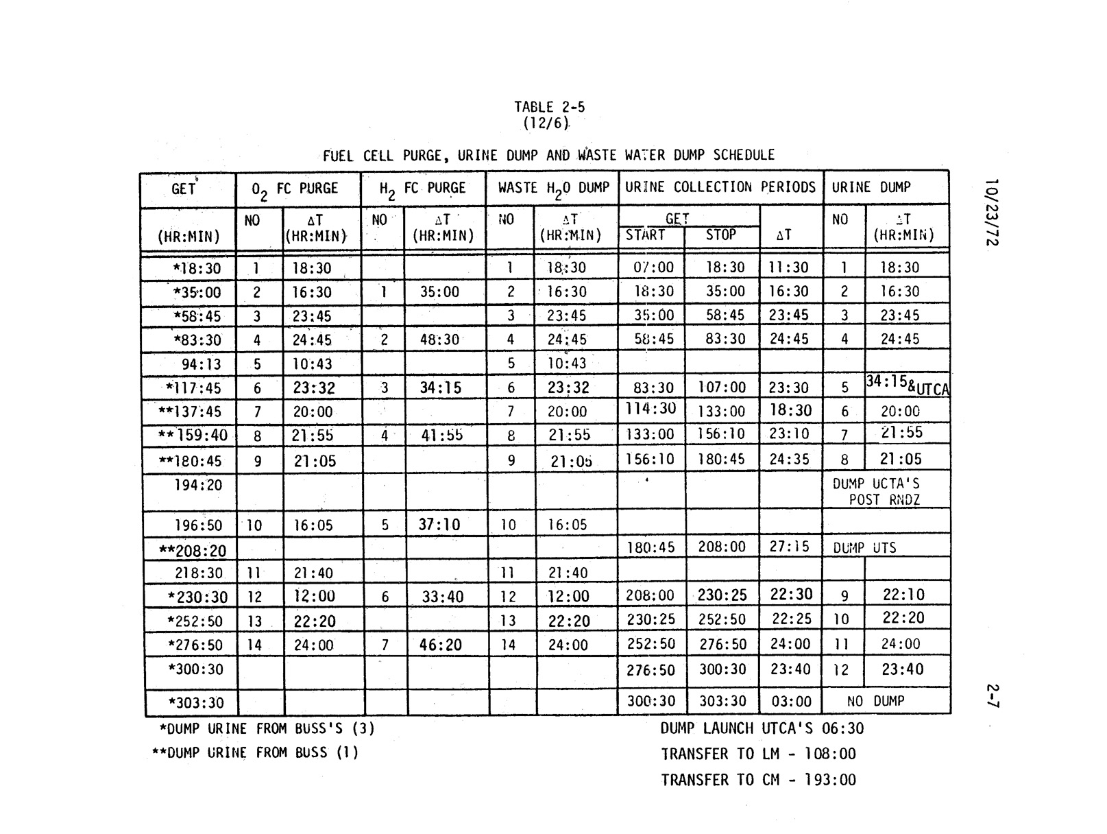 - 2-007 Table 2-5 - Fuel cell purge, urine dump and waste water dump schedule
