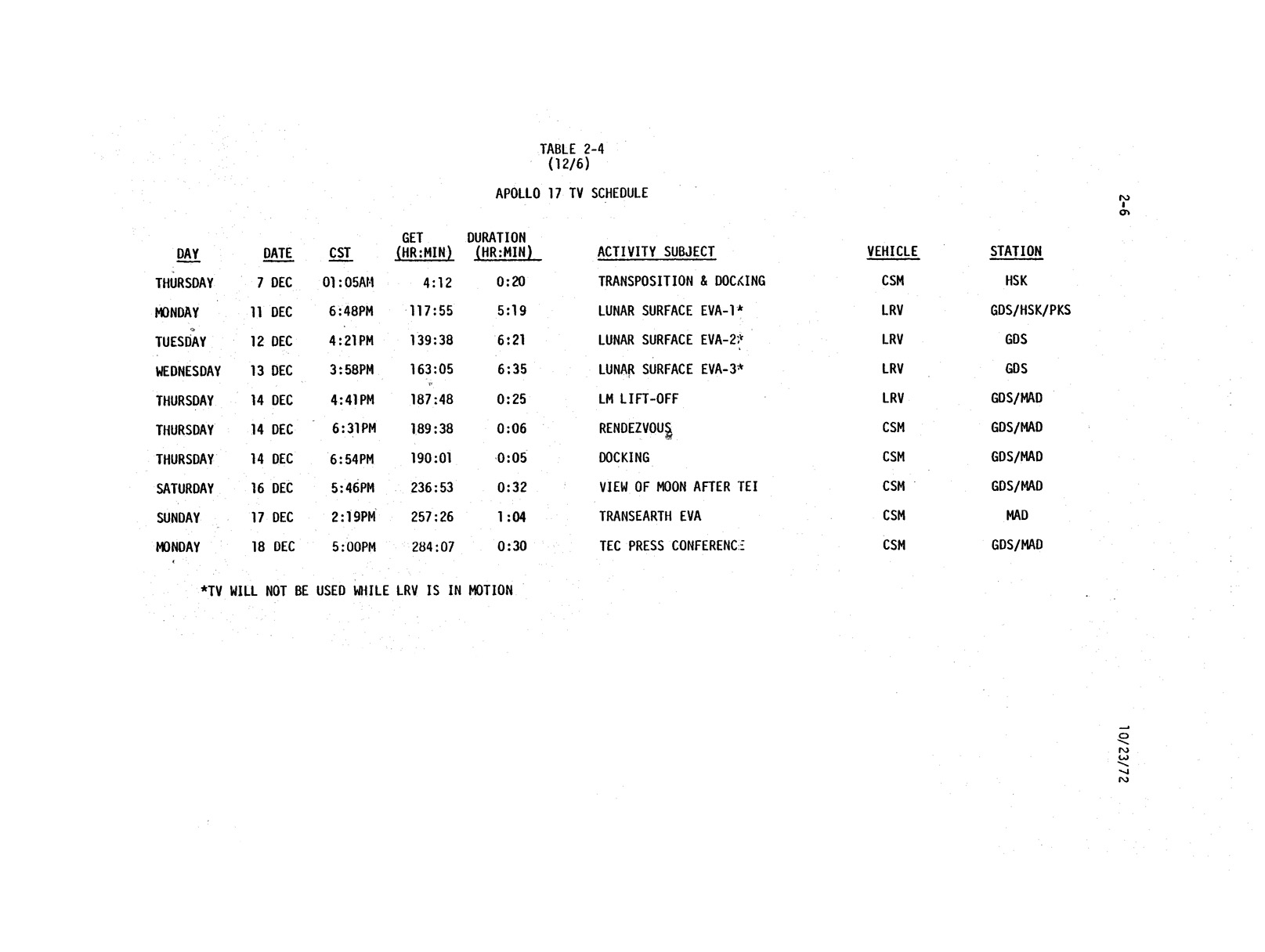 - 2-006 Table 2-4 - Apollo 17 TV schedule