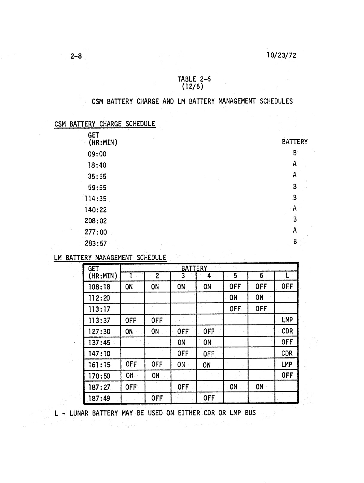 - 2-008 Table 2-6 - CSM battery charge and LM battery management schedules