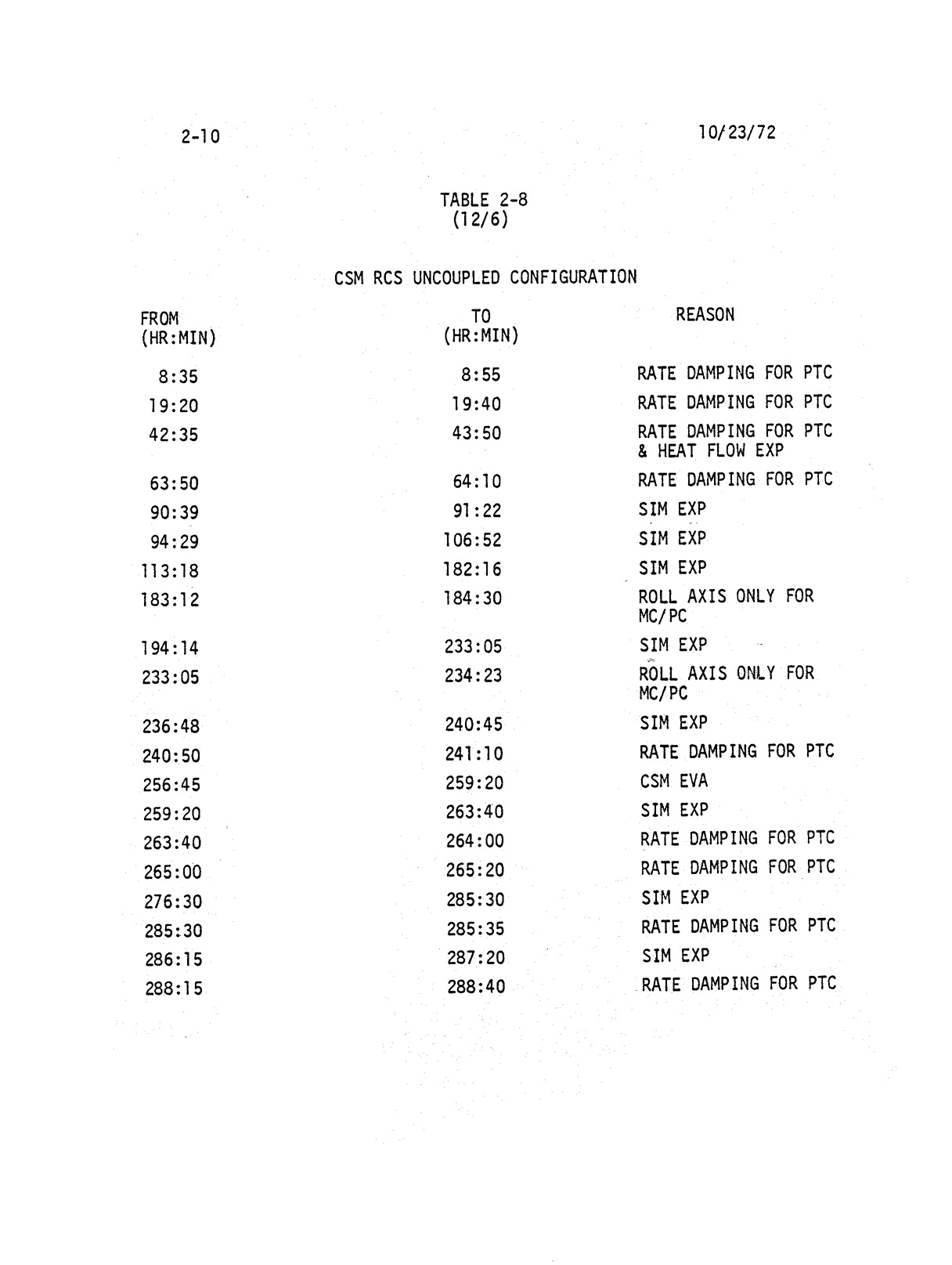- 2-010 Table 2-8 - CSM RCS uncoupled configuration