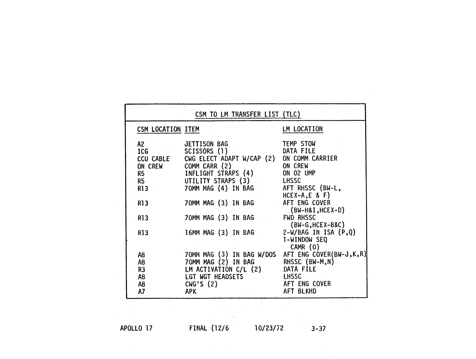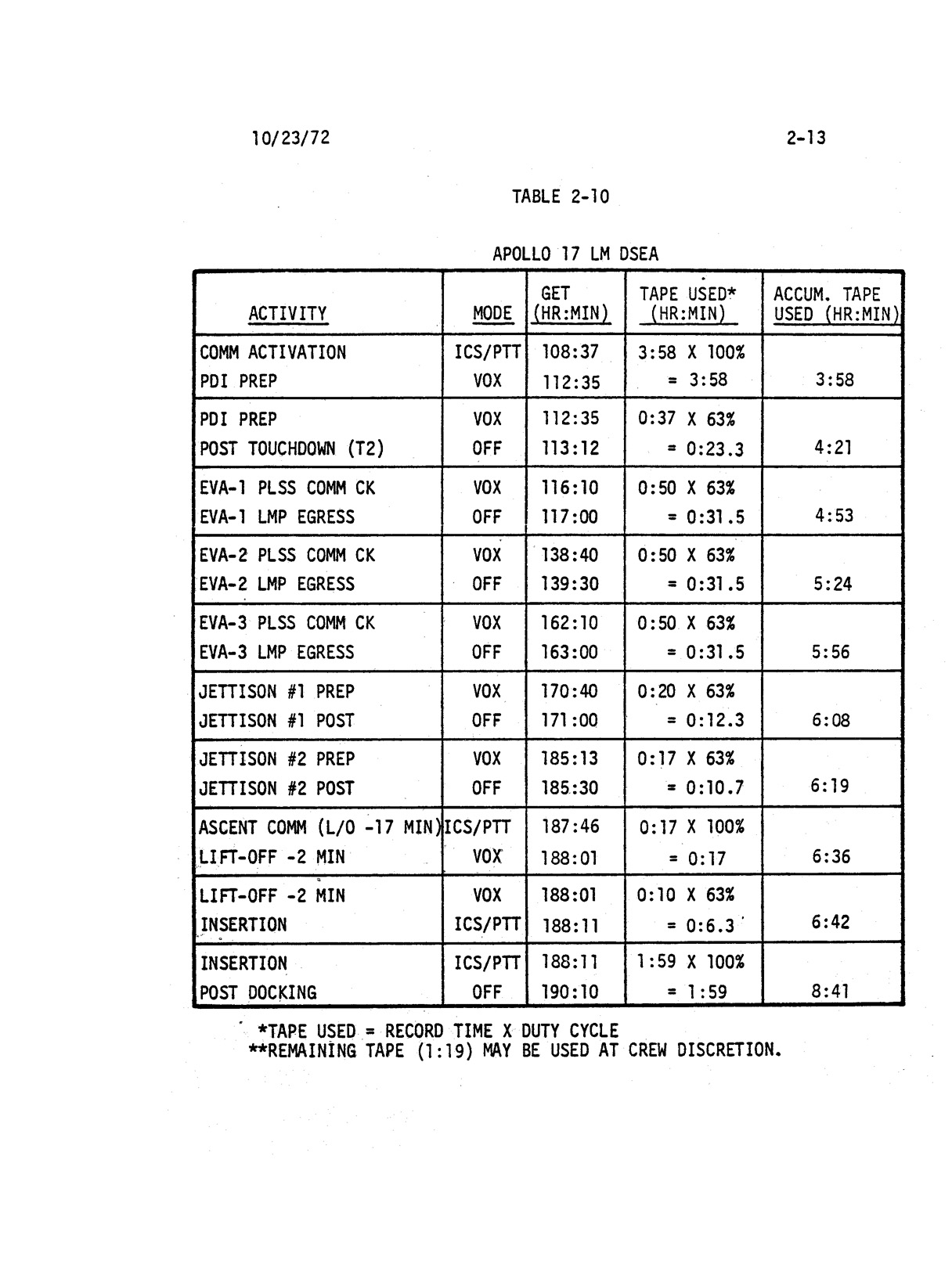 - 2-013 Table 2-10 - Apollo 17 LM DSEA