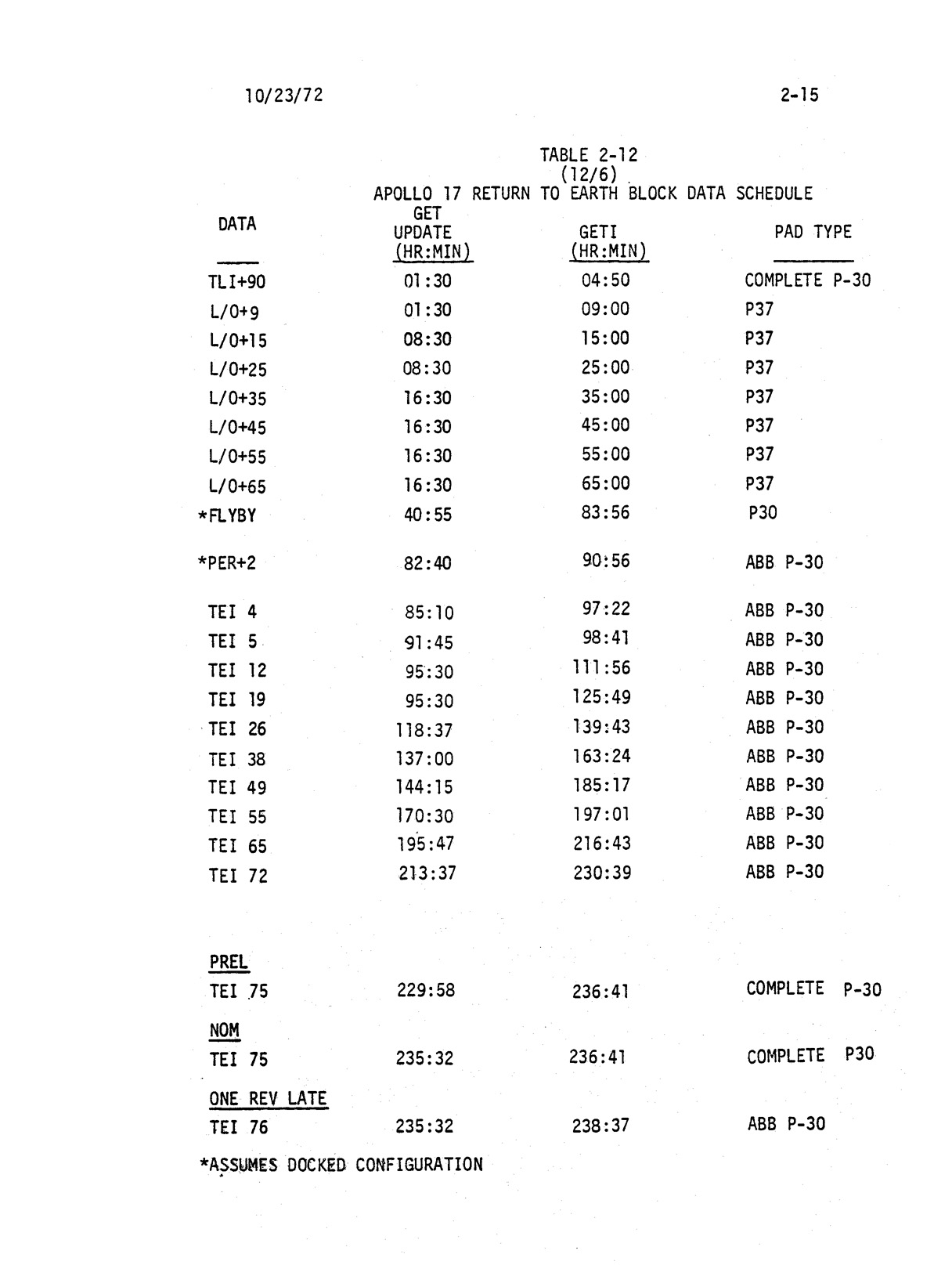 - 2-015 Table 2-12 - Apollo 17 return to Earth block data schedule