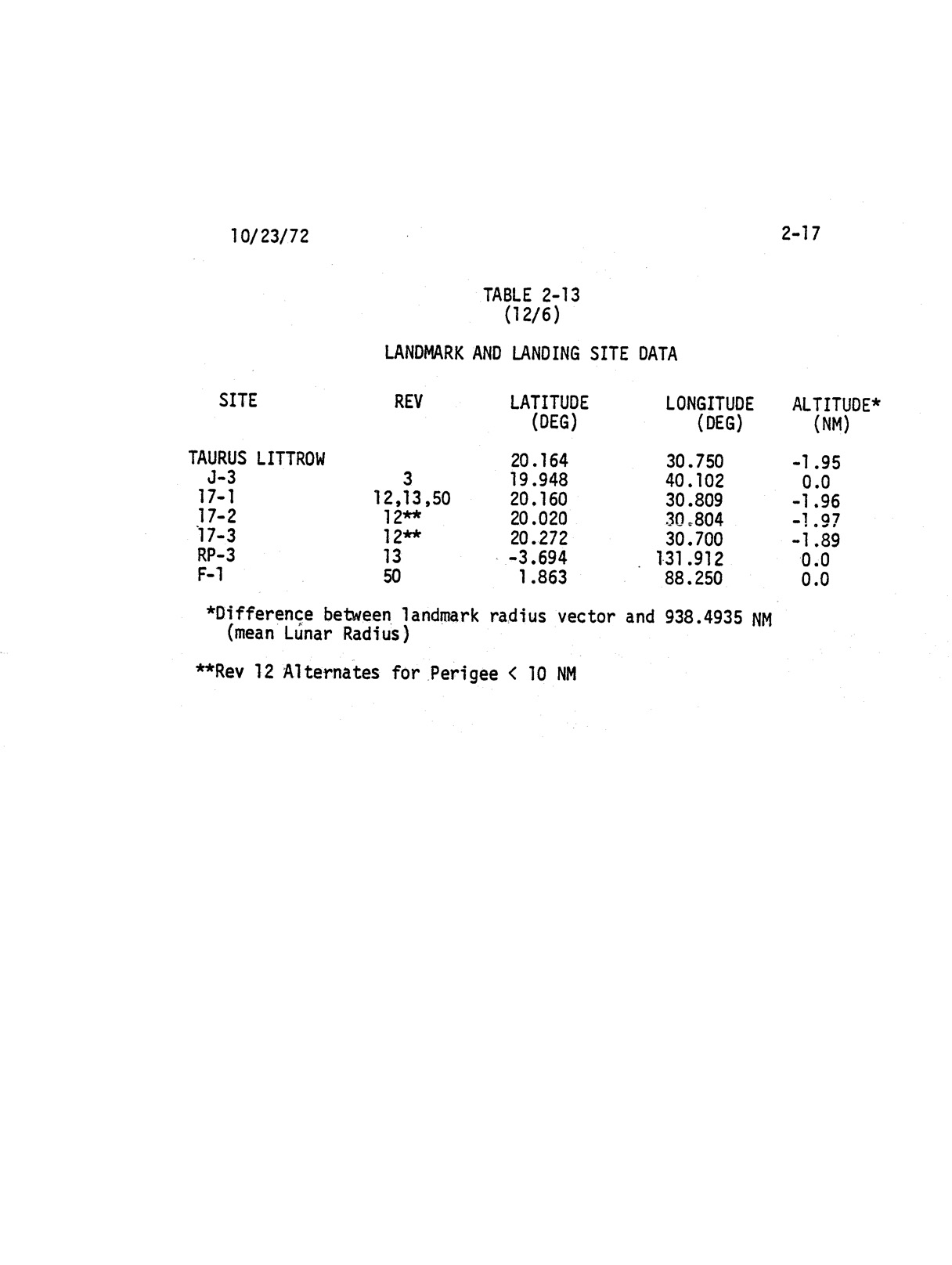 - 2-017 Table 2-13 - Landmark and landing site data