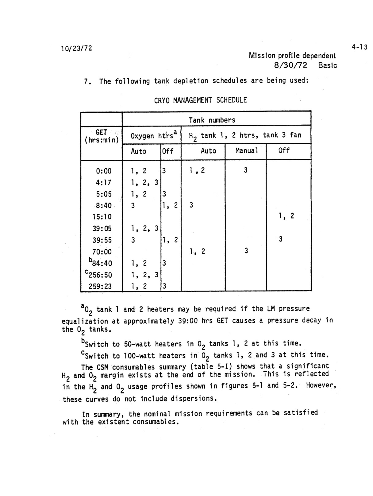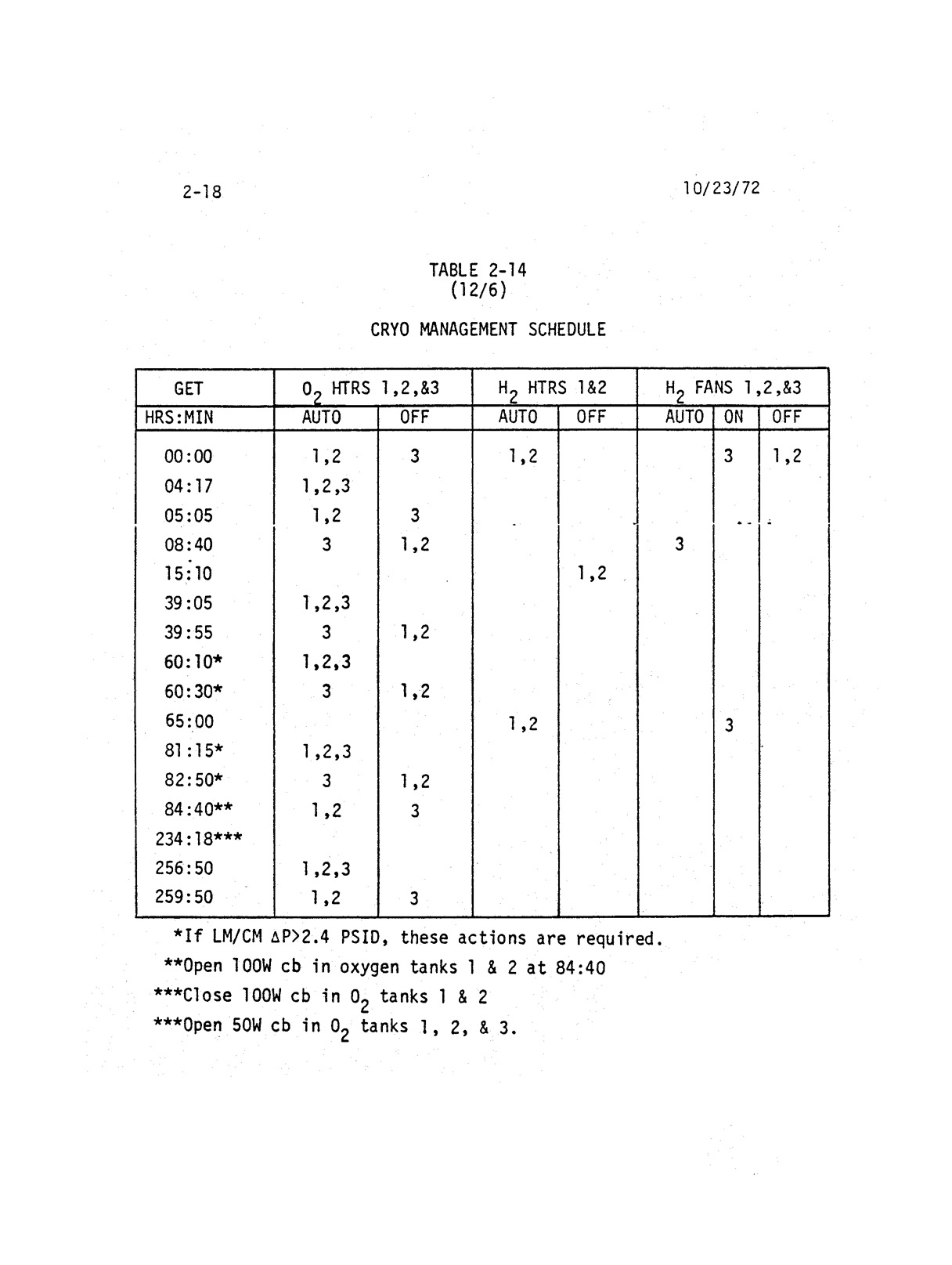- 2-018 Table 2-14 - Cryo management schedule