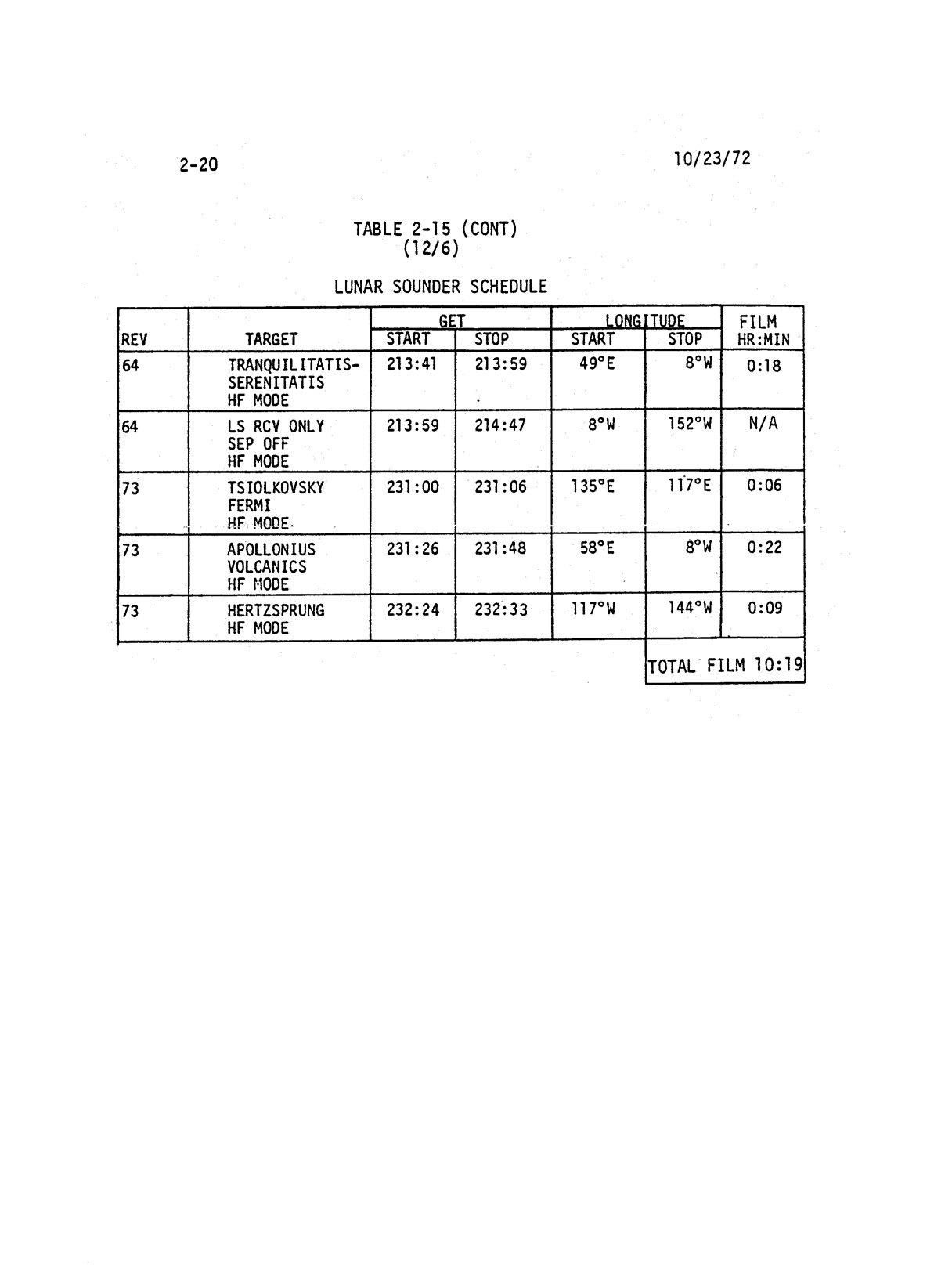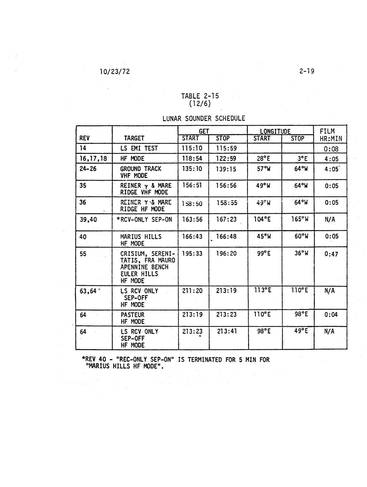 - 2-019 Table 2-15 - Lunar sounder schedule