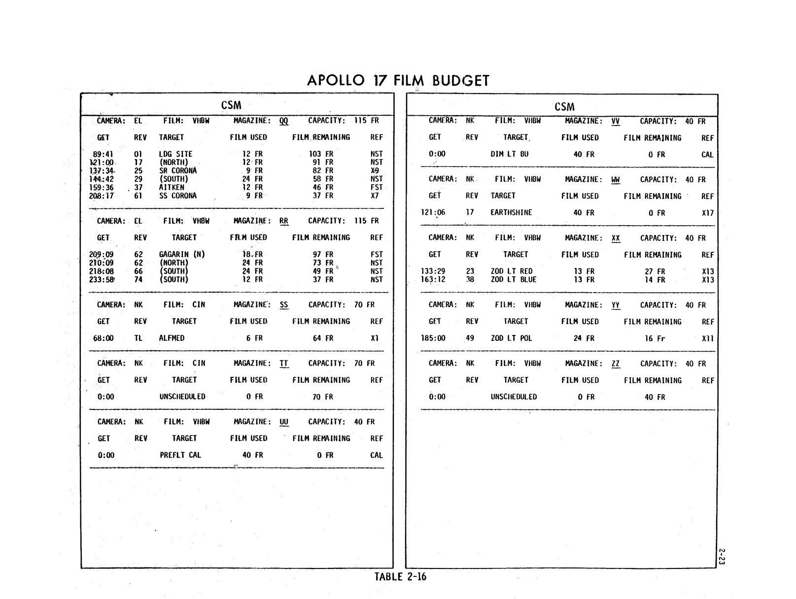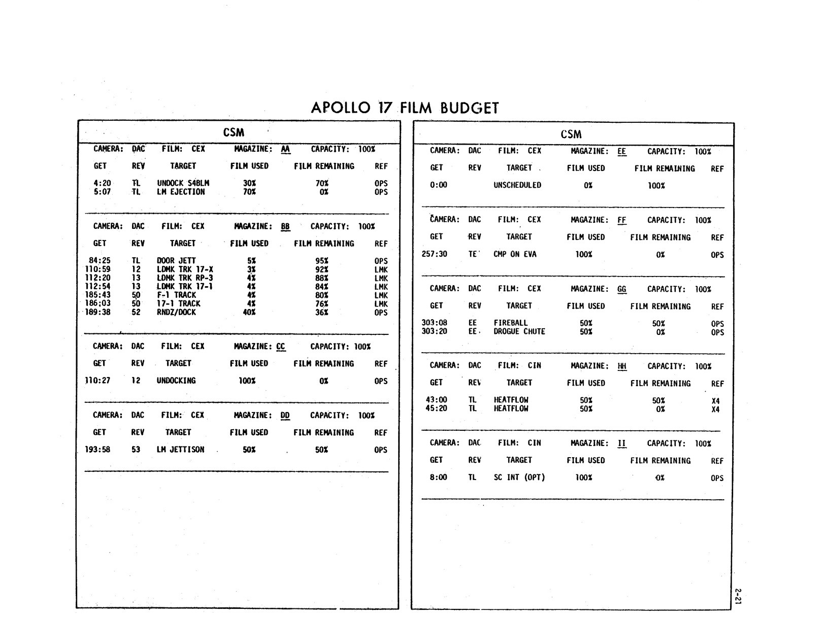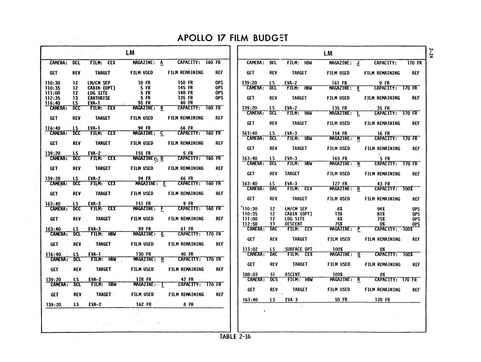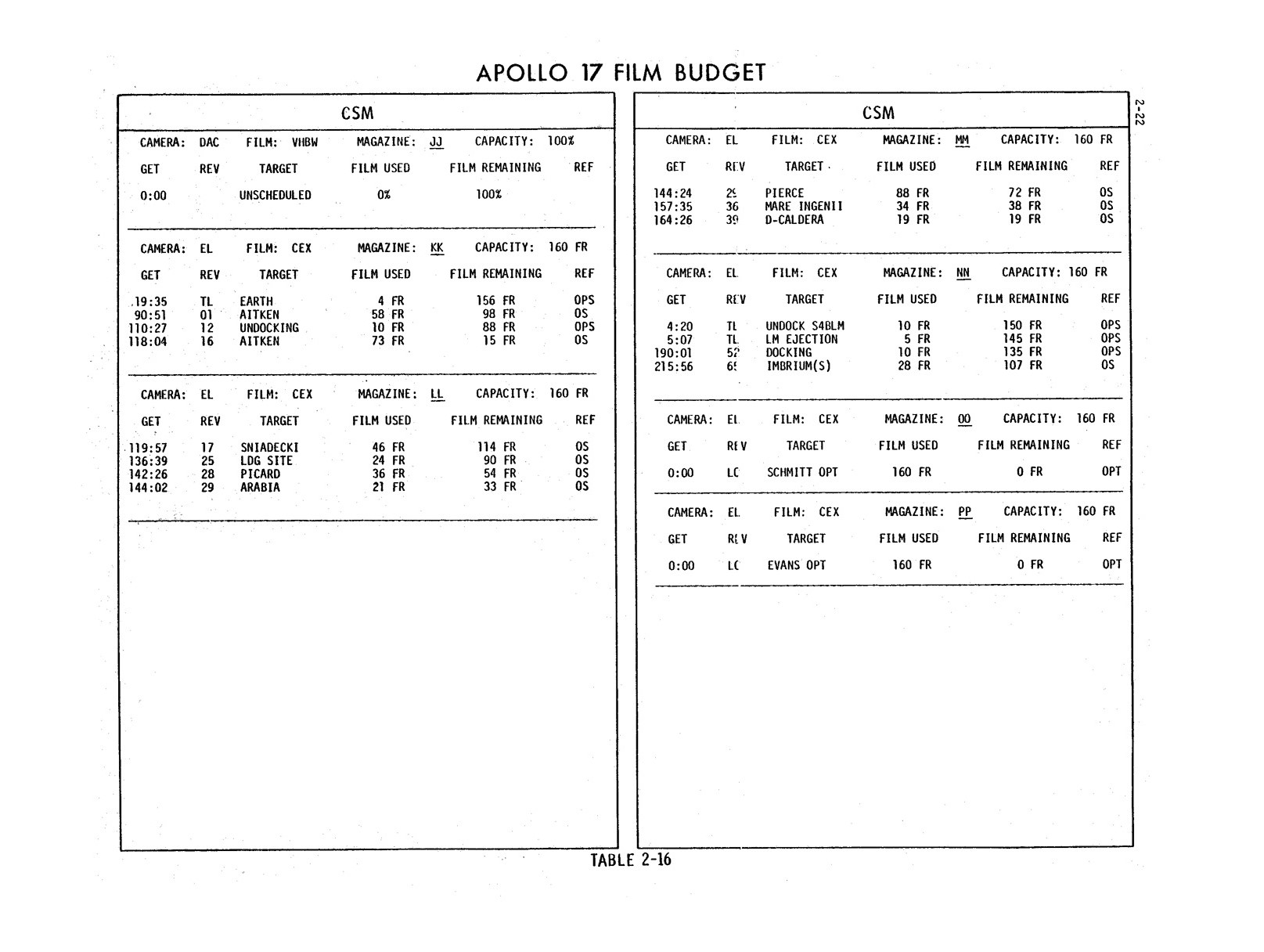 - 2-021 Table 2-16 - Apollo 17 film budget