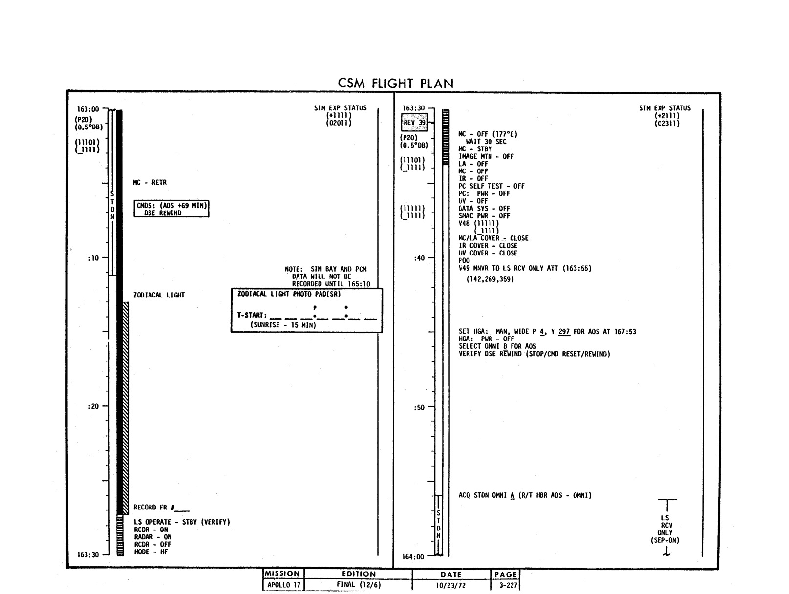 - 2-030 Chart 2-4 - Lunar sounder receive only (SEP on), Revs 39, 40, 41