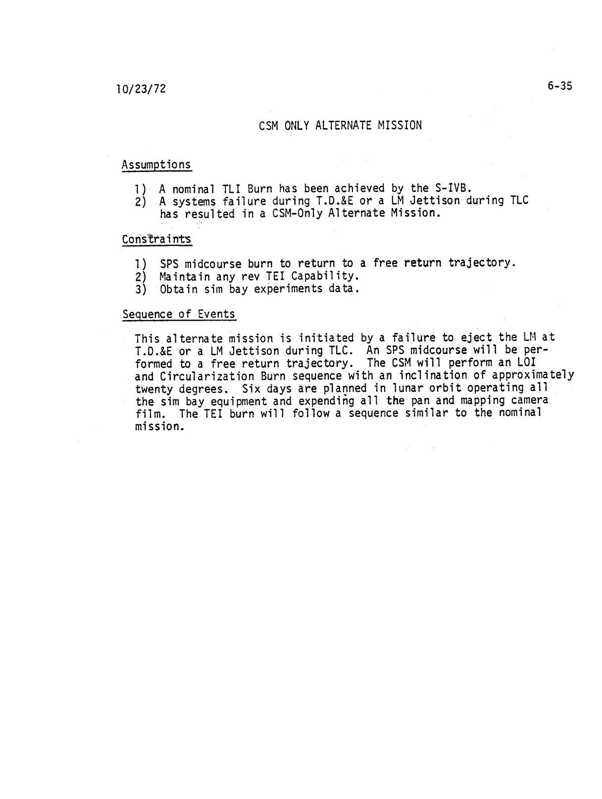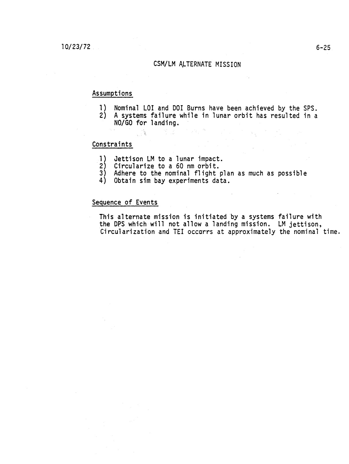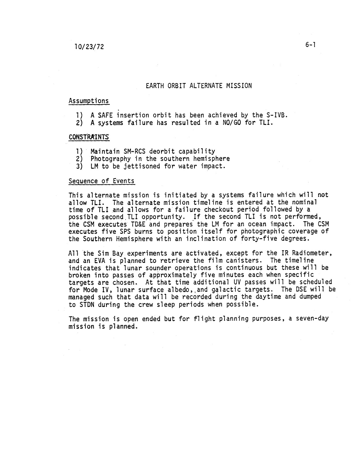 Section 6 - Alternate Mission Timelines