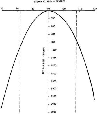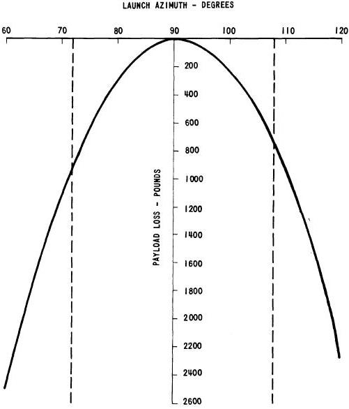 Studies in the early 1960's indicated that if the hold exceeded 2 hours, the launch would probably be scrubbed for that day. For the Apollo lunar missions, daily launch windows required a range of launch azimuths; the longer the daily launch window, the larger the required range of launch azimuths. The mechanism by which variable launch azimuths provides launch windows, will be described in the translunar injection phase. The range of launch azimuths available, were limited due to range safety considerations, launch vehicle performance and earth orbit insertion tracking requirements: