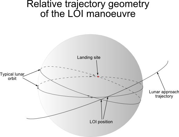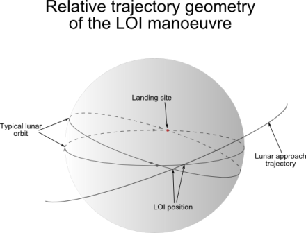 Trajectory geometry constraints and spacecraft performance capabilities combined to limit the accessible area on the moon.
