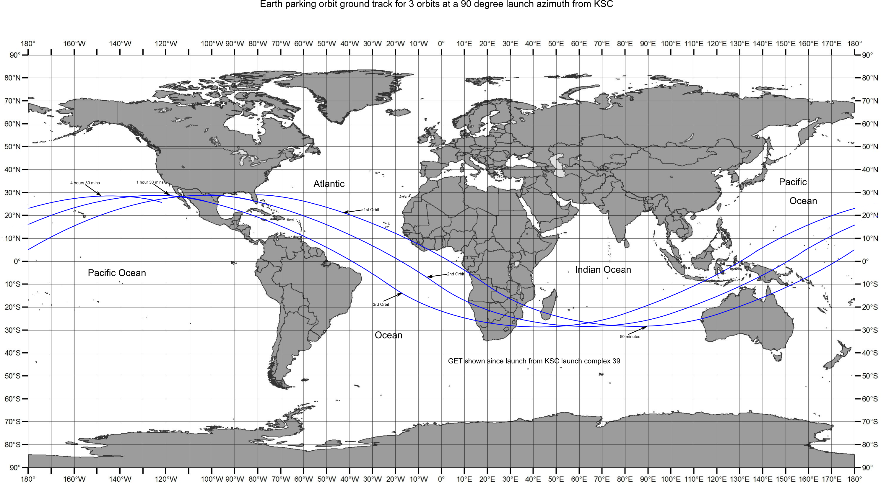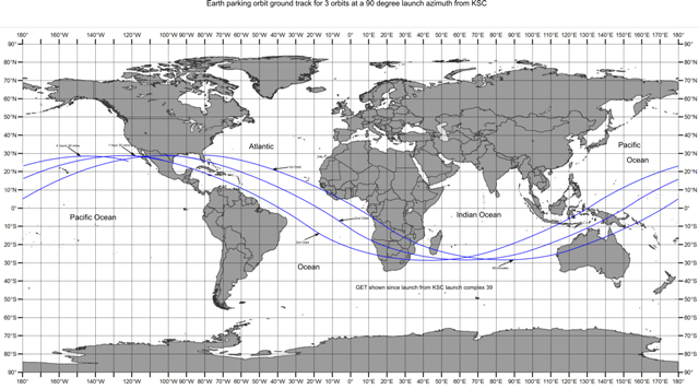 There was also a minimum network coverage requirement that stated that two tracking stations and a command station must be passed over before the GO decision for the second S-IVB burn (TLI), however this was always accomplished during the first earth parking orbit during the first 'stateside' pass.