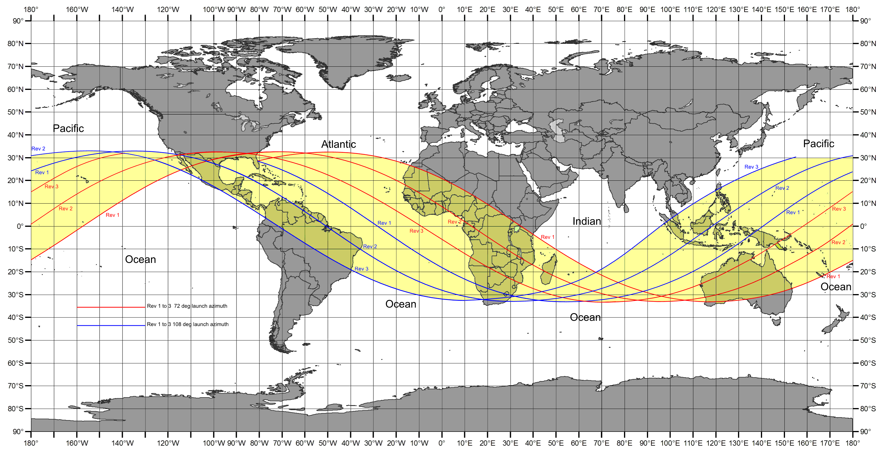 A 26° range in usable launch azimuths anywhere between the values of 72° and 108° provided for at least a 2.5 hour daily launch window. A 2.5 hour launch window was considered the minimum acceptable. Most missions planned a range of launch azimuths which provided up to 4.5 hour launch windows. The choice of where the 26° range is located within these maximum bounds is up to the mission planners, and is based on such things as maximising space vehicle fuel reserves, Manned Spaceflight Tracking Network (MSFN) coverage, launch window duration, and providing a daylight launch. The full 26° range of launch azimuths was seldom planned for due to other mission constraints.