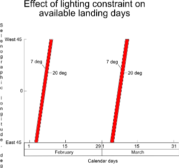 These accessible landing area limitations combined with operational constraints to limit launch opportunities to certain specific periods. In order to fully understand the mission planning considerations and the effects of the various constraints, we need to look closely at the trajectory characteristics.