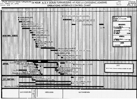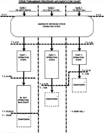 Figure 9 gives a graphic representation of the operations that must be carried out during a 48 hour scrub turnaround when the scrub was called post launch vehicle cryogenic loading.