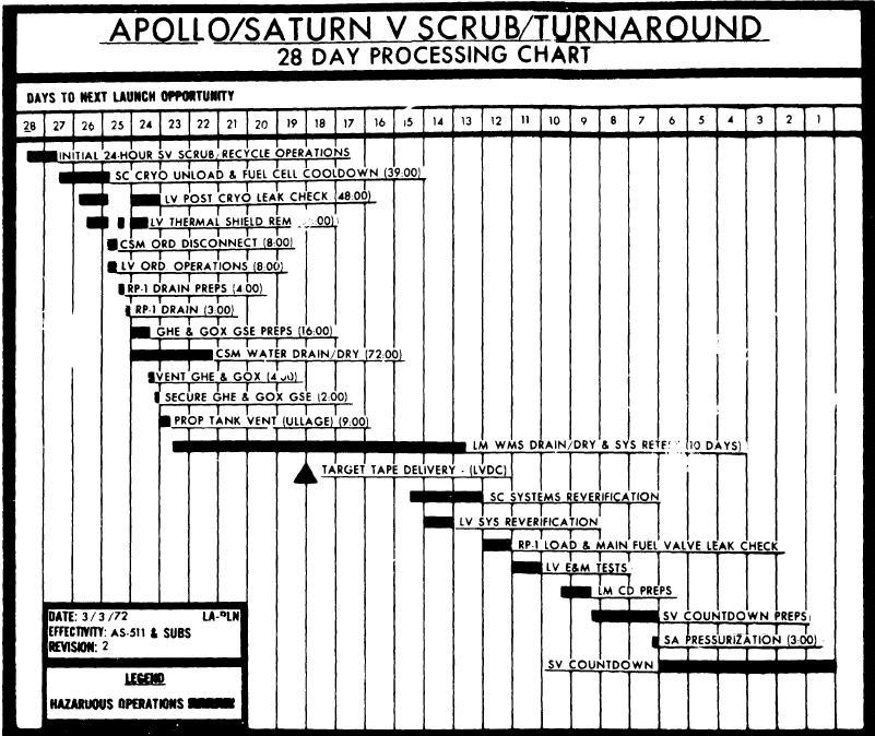 Apollo Saturn V launch hold / recycle and scrub turnaround constraints