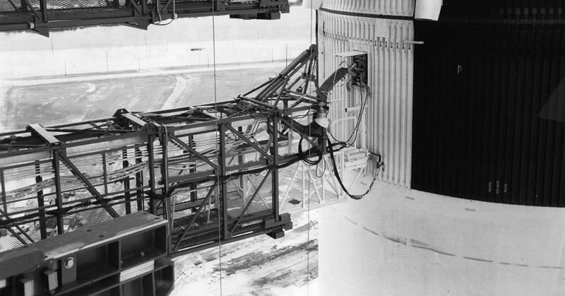 Figure 4 shows a photograph of swing arm number 2 connected to SA-500F the facilities checkout Saturn V.