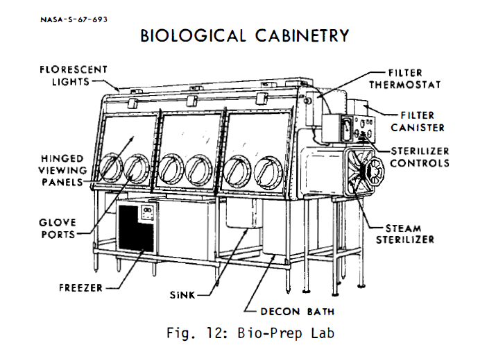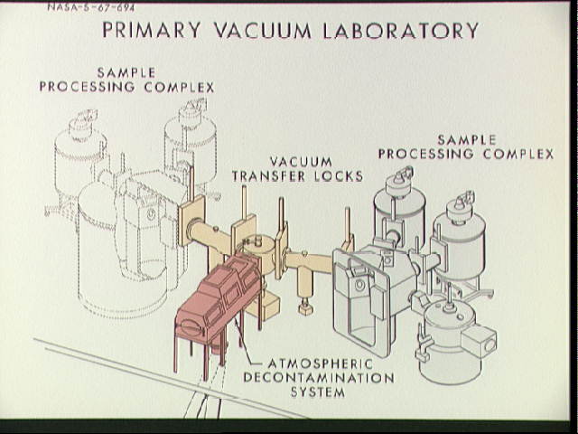 The High Vacuum Complex, for sample preparation. Vacuum equipment would maintain the lunar samples in protected conditions, with the staff secure from exposure to the lunar samples - and vice versa!
