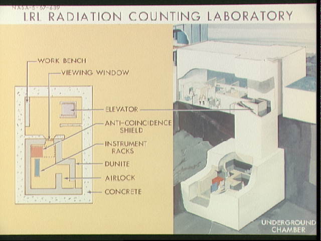 The Radiation Counting Laboratory or RCL was a highly specialized part of the LRL. It was set up 15 meters or 50 feet underground to protect it from background radiation produced by radioactivity in the Earth's own crust. Massive amounts of lead shielding and a special air conditioning system produced an environment where even the smallest amounts of radioactivity could be potentially detected in the lunar samples. With very brief half lives, the samples required for the radiation counting were those that were processed most quickly in the High Vacuum Complex for sample reception in the hopes of catching any elusive results.