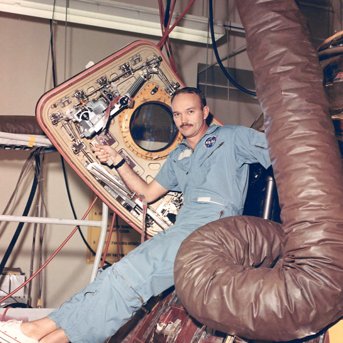 Mike Collins at the CM hatch. The Command Module Columbia arrived at the LRL on 30 July.