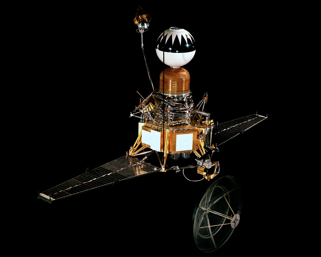 Model of the Viking spacecraft to Mars. The Viking spacecraft was composed of the Orbiter (below) and the Lander. The Mars lander traveled inside an egg-shaped protective cocoon.