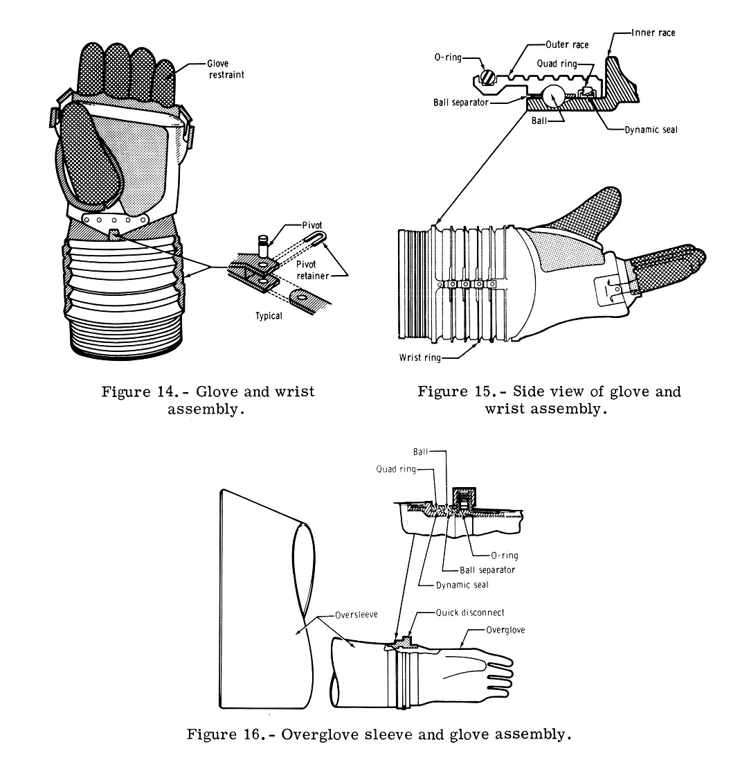 The interface between the lab technician and the lunar samples consisted of a specially prepared pair of gloves. They were reinforced to prevent the material from ballooning when pushed into the vacuum chamber - while the interior of the gloves was maintained at a normal pressure. A second glove made of Viton (synthetic fluorine rubber) formed the outer protective layer. These gloves were prone to splitting at the fingers and caused all kinds of trouble, especially during the hectic build-up to the first lunar landings when the systems were tested for the actual lunar sample processing.
