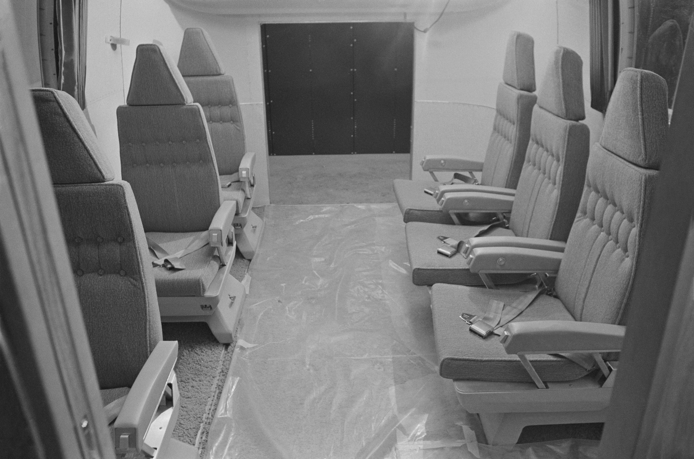 The main living area was the so-called lounge, with an adjoining kitchen. There were six airplane seats around a foldable table that could be used for eating and leisure activities. The kitchen was equipped with a microwave oven for heating up ready meals. The kitchen also contained a decontamination airlock that could be used to pass items into the MQF trailer after a sterilization with a bath in sodium hypochlorite. It was through this airlock that the lunar sample containers, film and other equipment from the Command Module were passed out to be transported to Houston.