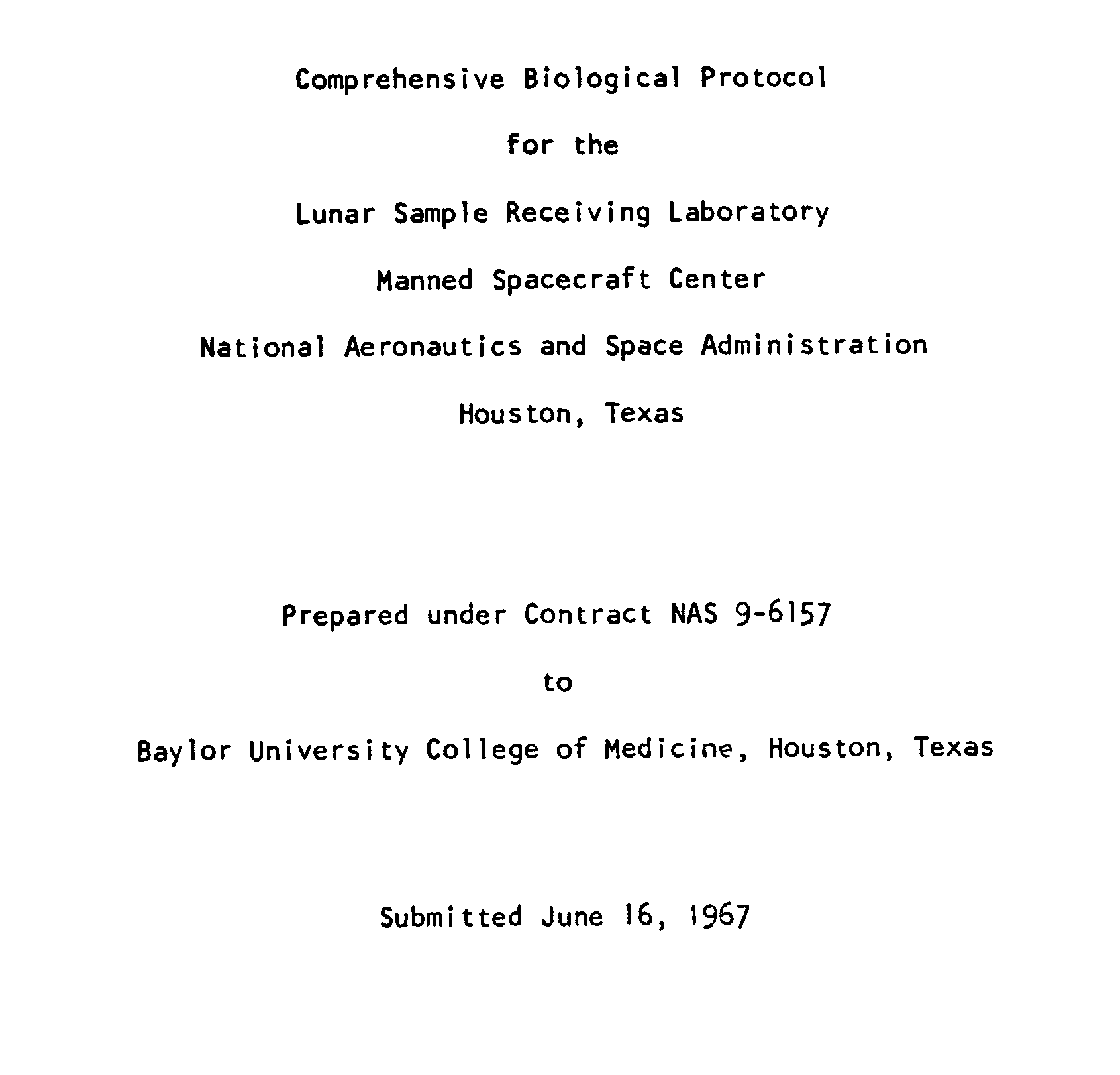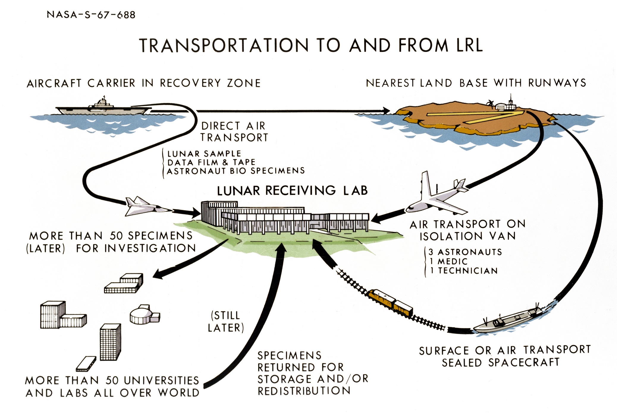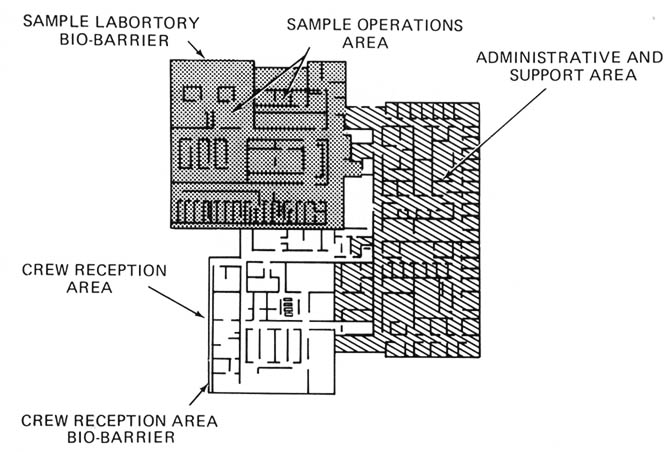 NASA and the ICBC began to draw up plans for actual sample reception and the crew recovery. Under a commission from the ICBC, Baylor University College of Medicine in Houston produced a 571-page document detailing the needs for the scientific program to determine whether lunar material was harmful to Earth life.