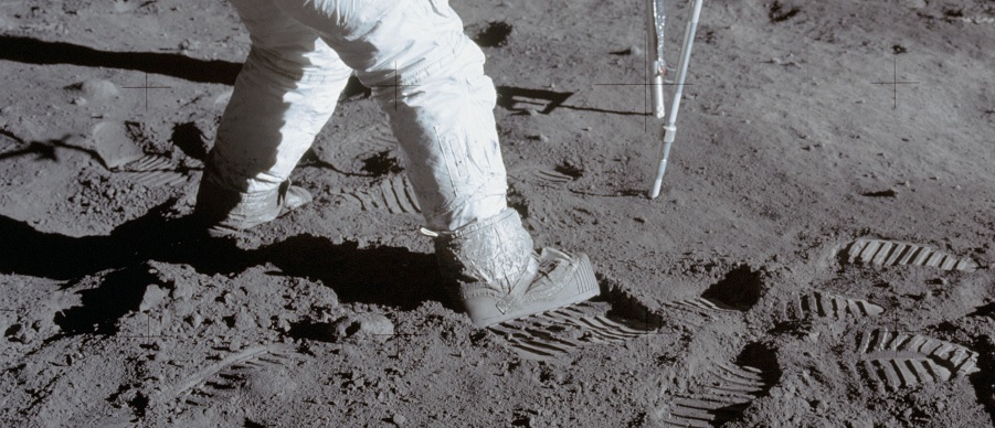 Portion of AS11-40-5964, showing Buzz Aldrin's dusty boots and suit.
