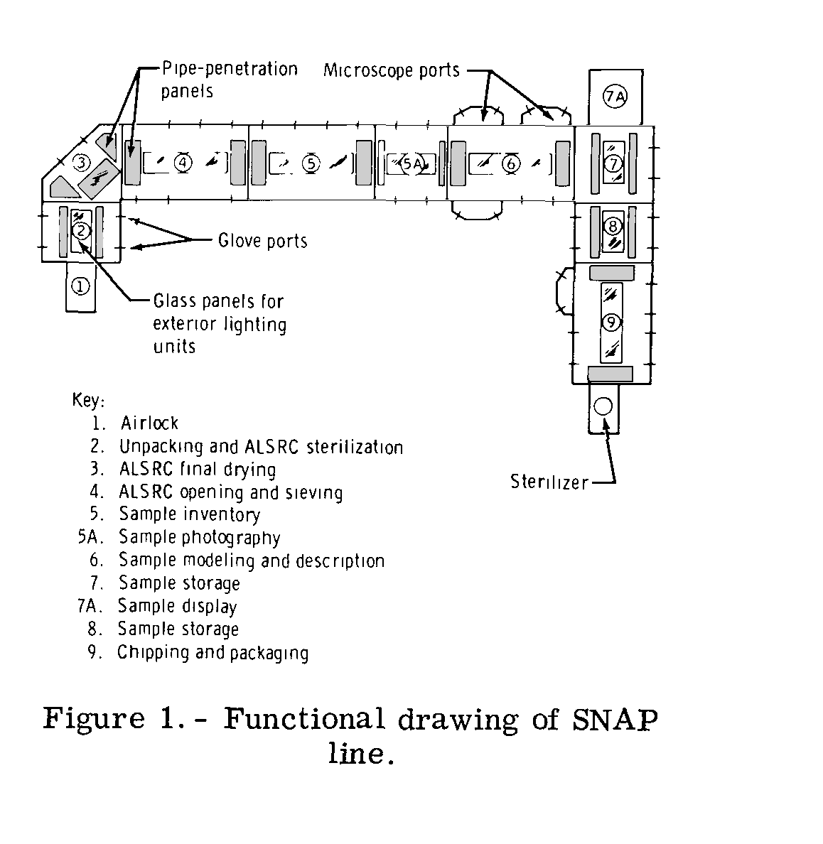 General layout of the Lunar Receiving Laboratory. A single facility contained the entire LRL, hence limiting the potential for exposure while transporting possibly hazardous material.
