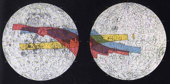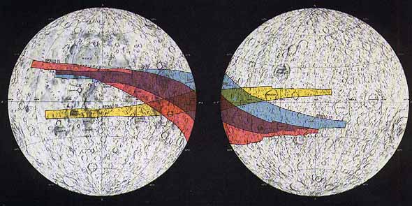 The early Apollo lunar orbiting missions carried out photo-geological surveys of much of the lunar surface adjacent to their orbital ground track. For the initial flights (Apollo's 8 to 14) the ground tracks were limited to the equatorial region of the Moon, as the choice of the initial Apollo landing sites was in the Apollo zone along this equatorial band (see map below).