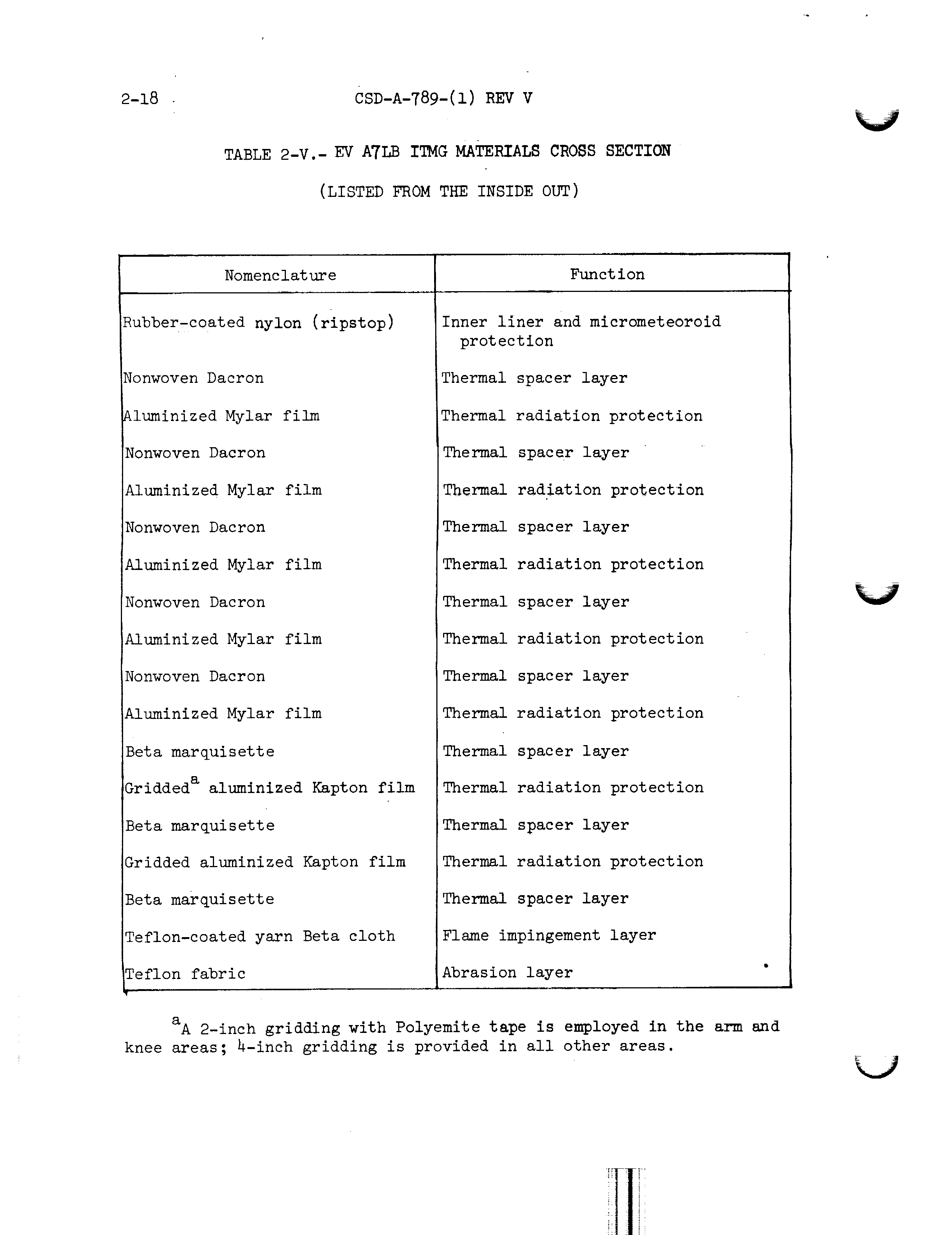 - Page 2-18 ( 134k ) Table 2-V, Materials Cross-section (listed from inside out)