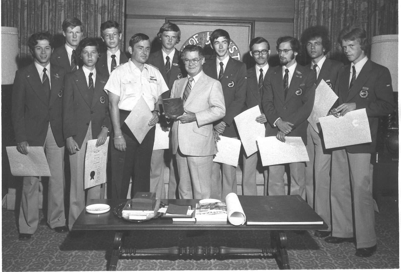With utmost interest I followed the Apollo Moon-flights, spending days and nights in front of the TV or radio.In the summer of 1973 I had a chance to take part in the International Air Cadet Exchange, thus visiting the United States together with 9 other young guys and an escorting officer of the German Air Force. We toured New York City, southern Texas and Washington D.C. In Houston, we visited the Johnson Space Center, and on August 2nd we were appointed Honorary Citizens of the City (In the picture below, I am the third from the right, sporting a beard. Houston Mayor Louie Welch is at the center, and our escorting officer is to his right).