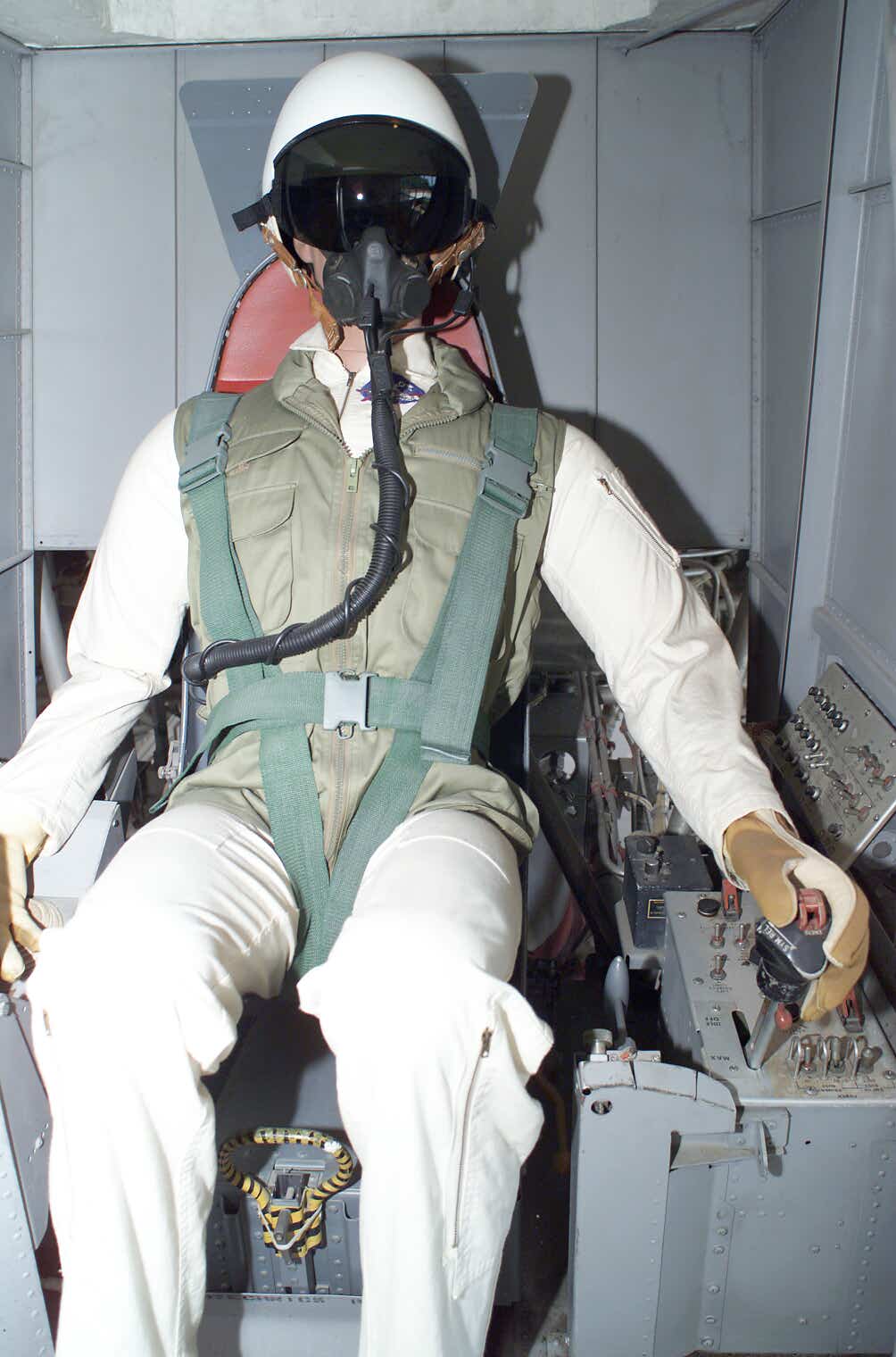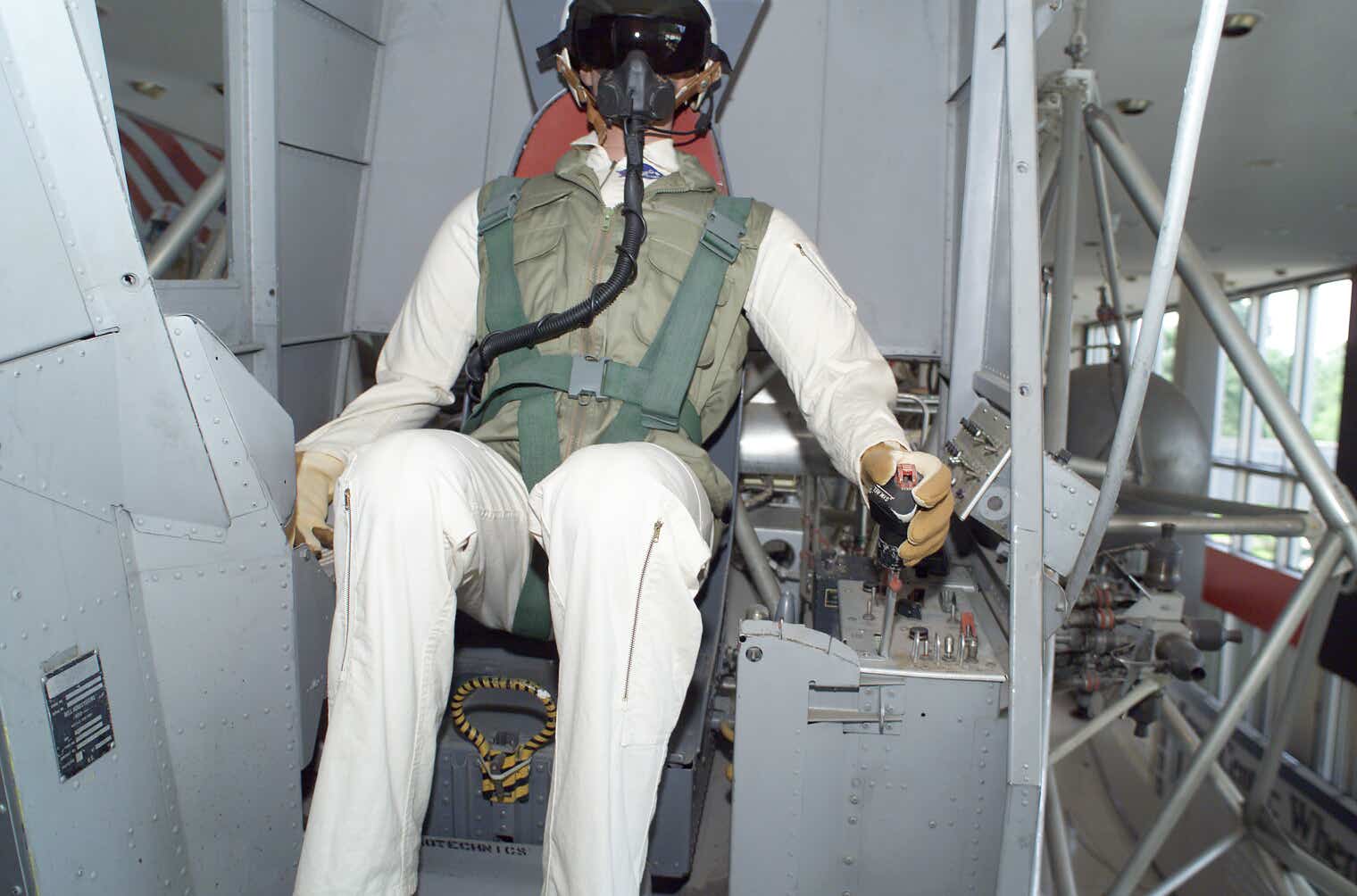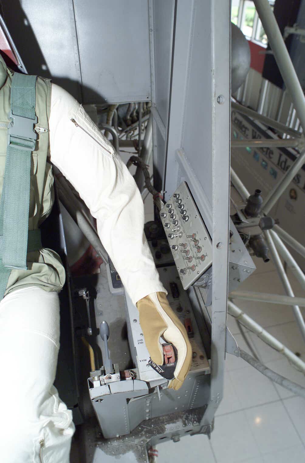 - View from the Front ( 148k ) showing additional detail of the lefthand panel. Note the tiger-striped ejection handle on the front of the seat.