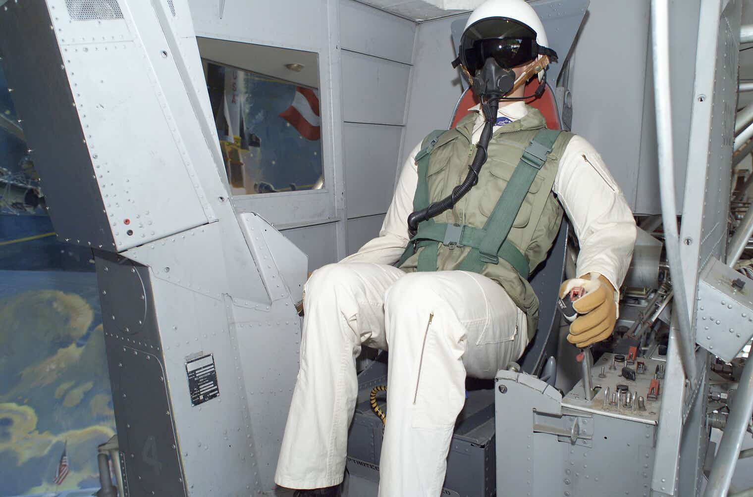 Gene Cernan in the cabin of the only LLTV (NASA 952)