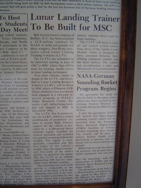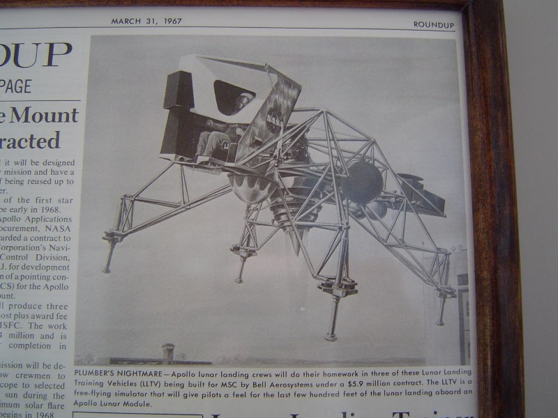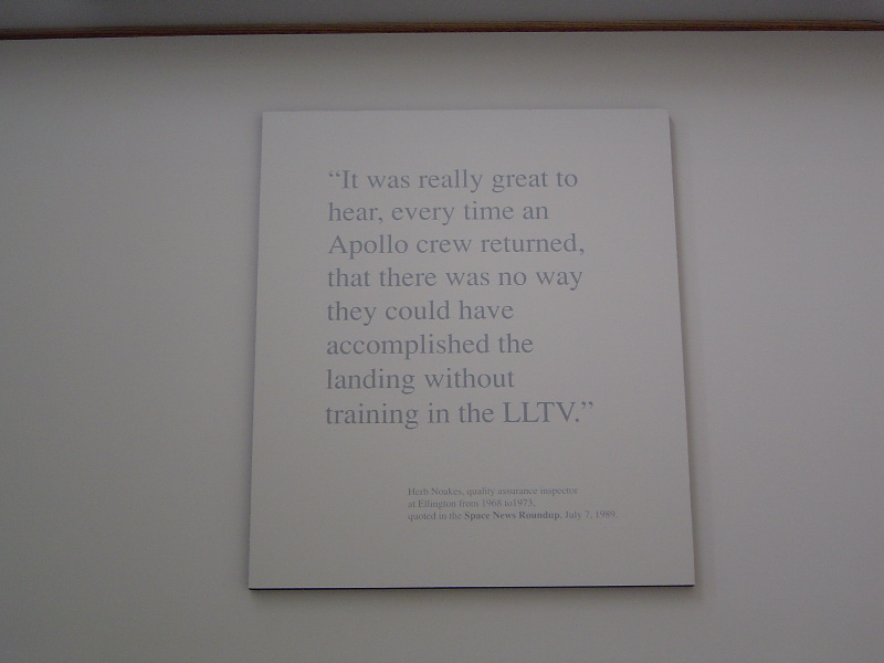 As of August 2004, the surviving LLTV was on display in the lobby of Building 2 at NASA's Johnson Space Center. Journal Contributor John Osborn, who took all of the photographs linked below, writes, "The LLTV is suspended from the ceiling, making close-up photography a challenge."